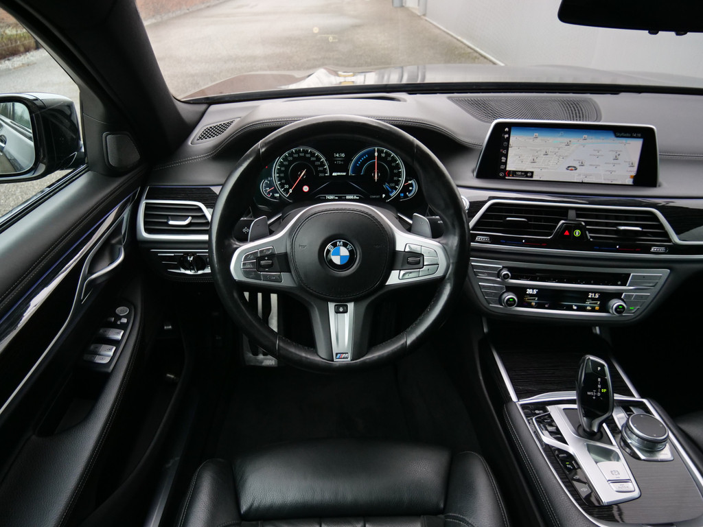 De nieuwste veiligheidssystemen komen in deze BMW 7-serie samen. Een belangrijke bijdrage aan de veiligheid onderweg levert de verkeersbord-detectie in deze BMW. Onbedoeld buiten de rijstrook raken wordt voorkomen door het Lane-keeping systeem. Voor meer veiligheid detecteert deze auto het risico van een aanrijding tijdig via de forward collision warning. Verder is deze auto uitgerust met head-up display, dodehoekdetectie, hill hold functie, brake assist en bandenspanningcontrolesysteem.