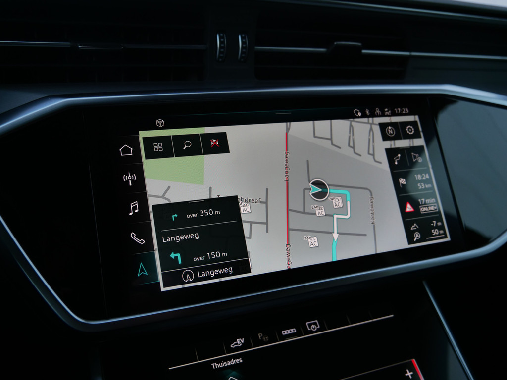 Alle functies die u onderweg nodig heeft, worden permanent geregistreerd en zijn afleesbaar op het digitale dashboard. De achteruitrijcamera laat duidelijk zien hoeveel ruimte u nog heeft bij het inparkeren. Met adaptive cruise control houdt deze auto automatisch afstand tot uw voorligger. Bij deze auto is uw smartphone een geavanceerde afstandsbediening. Remote services brengen u overal in contact met uw auto. Het full map navigatiesysteem geeft duidelijke instructies. Zo komt u veilig en vlot aan waar u moet zijn. Ook is de Audi uitgerust met: electronic climate control, sportstuur met schakelpaddels, DAB ontvangst, regensensor, automatisch dimmende buitenspiegels en centrale deurvergrendeling met afstandsbediening.