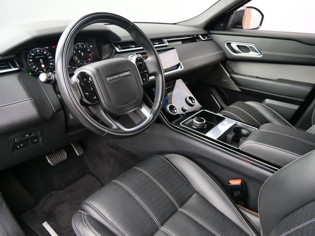 De indrukwekkende vormen en de topprestaties van deze Land Rover Range Rover Velar staan garant voor ultiem rijplezier. Deze auto uit 2018 heeft een tellerstand van 57642 kilometer. Deze goed onderhouden auto is van de eerste eigenaar. De krachtige motor geeft deze Land Rover uitstekende prestaties. De luchtvering biedt stabiliteit onder alle wegcondities. Het stijlvolle lederen interieur geeft deze Land Rover Range Rover Velar net dat beetje extra. Met het comfort van het verwarmbare stuurwiel, de voorstoelen inclusief massagefunctie en de achterbankverwarming benadrukt deze auto zijn positie als een ware verwenauto. U past de stoelen moeiteloos aan, ze zijn elektrisch in te stellen en hebben bovendien een geheugen. De elektrische achterklep opent met een druk op de knop, zodat u gemakkelijk toegang heeft tot de bagageruimte. De geavanceerde matrix LED-verlichting in de koplampen levert maximaal helder zicht en past zich subtiel aan zodra er een tegenligger komt. Zonder lichtkwaliteitsverlies! Bij de rijke uitrusting horen ook 21 inch lichtmetalen velgen, adaptief dempingsysteem, instelbare schokdempers, trailer assistent, elektrisch inklapbare buitenspiegels en in delen neerklapbare achterbank.