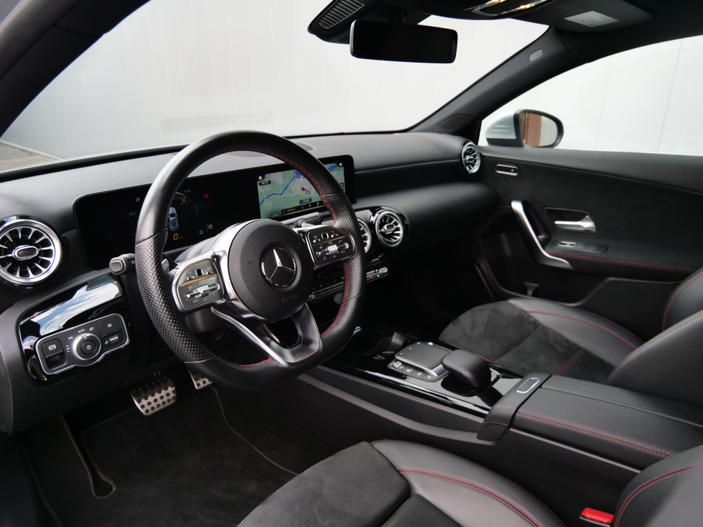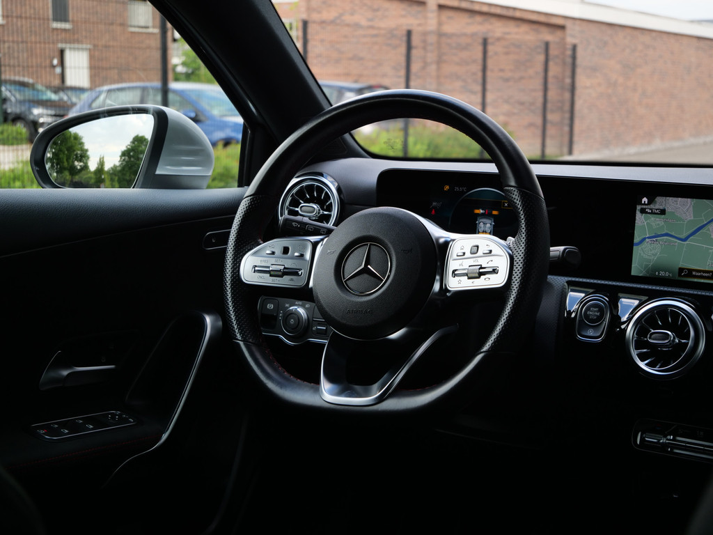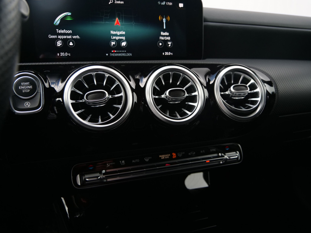 Het digitale dashboard geeft een nauwkeurig en makkelijk overzicht van alle belangrijke functies. Niets achter deze auto blijft verborgen door de achteruitrijcamera. Een veilig gevoel! De speciale app verbindt met Connected Services, die de status van vitale functies bijhoudt en waarschuwt als u bijvoorbeeld moet tanken, de bandenspanning moet controleren of olie moet bijvullen. De electronic climate control zorgt onder alle omstandigheden voor een prettige temperatuur. Deze Mercedes-Benz A-klasse maakt het rijden graag gemakkelijk. Daarom verzorgt de regensensor de mate van ruitreiniging die de ruitenwissers moeten leveren bij neerslag. Deze Mercedes-Benz is voorzien van dashboard met spraakbediening, navigatiesysteem met harde schijf, WIFI-hotspot, sportstuur met schakelpaddels, DAB ontvangst en automatisch dimmende buitenspiegels.