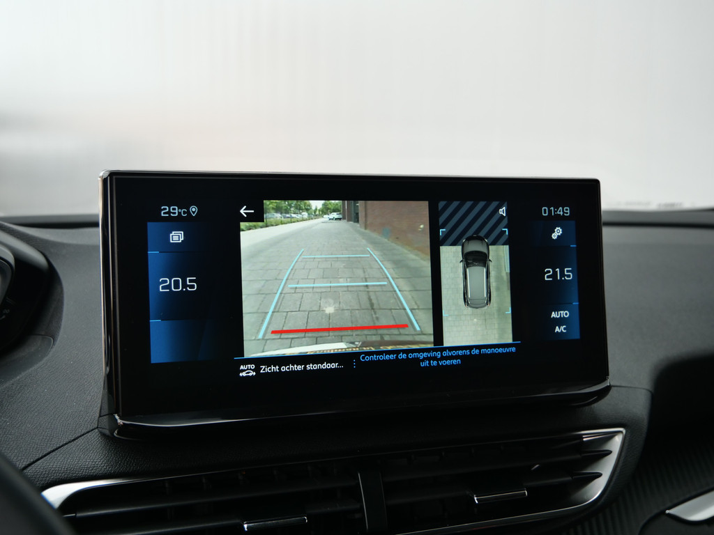 Het digitale dashboard is qua lay-out en zichtbaarheid superslim ingedeeld. Alle functies in één keer in beeld! Met de achteruitrijcamera ziet u wat er achter de auto gebeurt. Zo rijdt u moeiteloos achteruit. Terwijl het full map navigatiesysteem de ideale route voor u uitstippelt, geniet u van de kwaliteit van het audiosysteem met DAB-ontvangst. De bediening is bovendien gemakkelijk via knoppen op het stuur of via spraak. Of het buiten nu warm is of koud, dankzij electronic climate control is het binnen altijd behaaglijk. Het luxeniveau in deze Peugeot is niet alleen gericht op comfort, maar ook op uw veiligheid. Tal van sensoren helpen u om de omgeving in de gaten te houden. De automatisch inschakelbare verlichting zorgt dat automatisch de verlichting wordt ingeschakeld als het donker wordt, wat bijvoorbeeld in tunnels erg handig is. En de regensensor zet de ruitenwissers aan zonder dat u eraan hoeft te denken. En dan is deze auto ook nog eens voorzien van cruise control, keyless entry, buitentemperatuurmeter, automatisch dimmende binnenspiegel en lederen stuur.