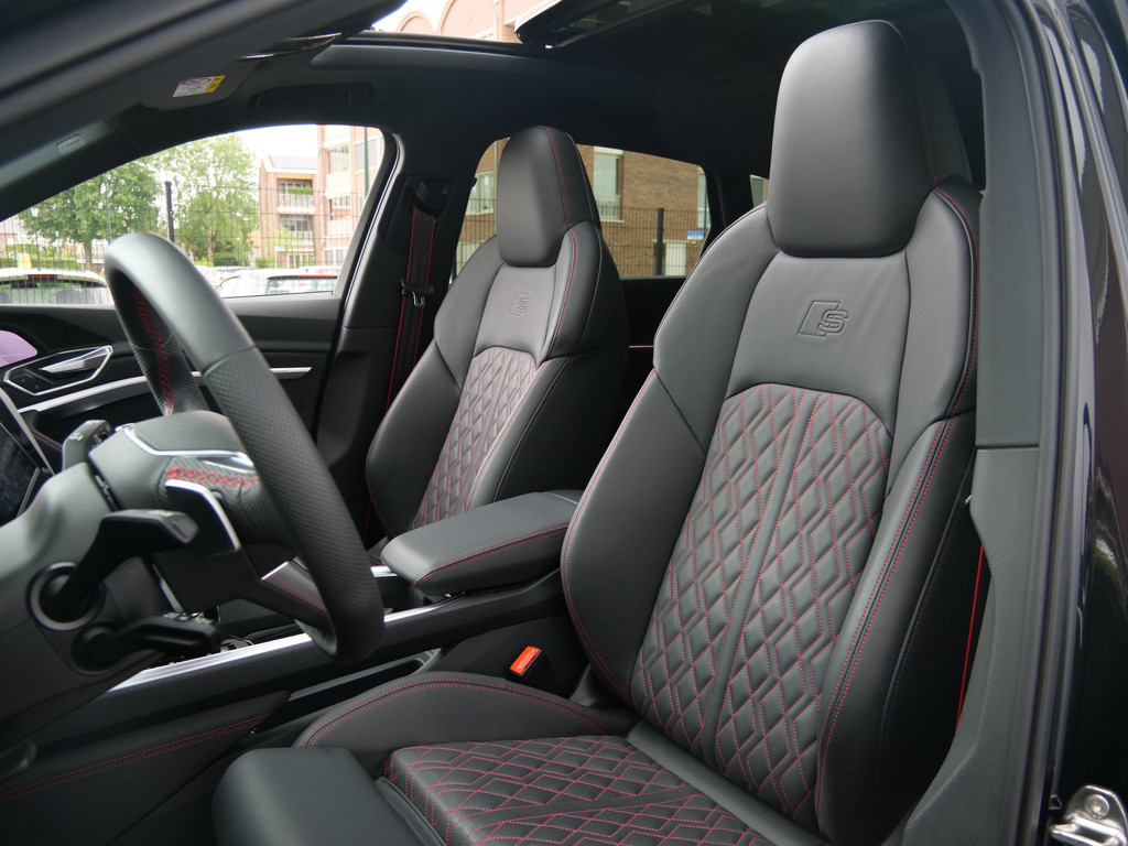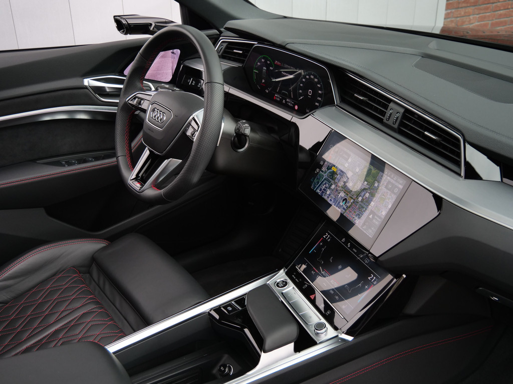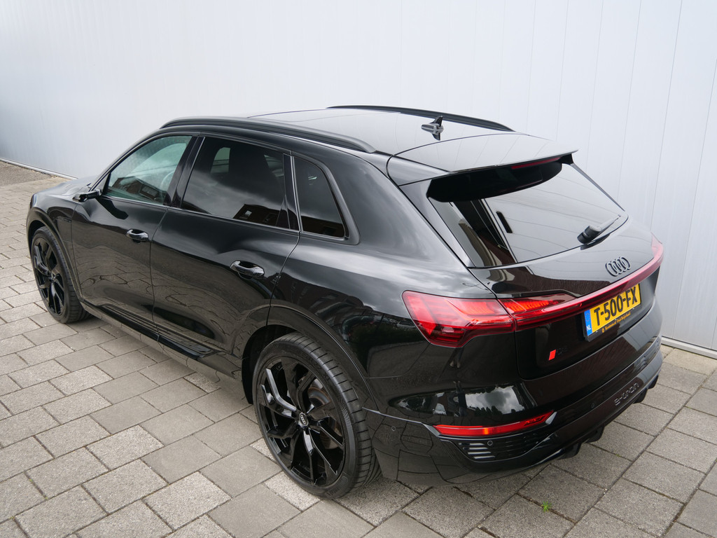 Duurzaam en dynamisch, de Audi Q8 e-tron verenigt deze twee uitersten in zich. Dit is een auto uit 2023, er staat 44750 kilometer op de teller. De fluisterstille elektromotor zorgt voor pittige rijprestaties zonder uitstoot. Maar wel met fiscaal voordeel! De S-Line styling geeft een niet te missen uitstraling. Een krachtige motor geeft deze auto zijn sportieve prestaties. Dat noemen ze nou een ruimtelijk effect: het elektrisch bediende glazen panorama dak, dat net zo gemakkelijk open en dicht gaat als de elektrisch bedienbare achterklep. En ondertussen het ware luxegevoel van het lederen interieur. Winter... Eerst krabben, dan genieten van de stoelverwarming. Bij de rijke uitrusting horen ook 22 inch lichtmetalen velgen, LED koplampen, adaptief dempingsysteem, warmtewerend glas, in delen neerklapbare achterbank en LED-achterlichten.