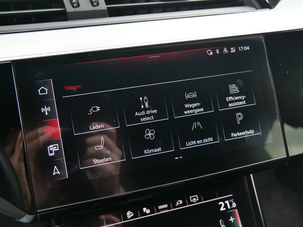 Ervaar de wonderen van de digitale mobiliteitswereld waarbij alles wat u wenst op het digitale dashboard verschijnt. 'Boem is ho'? Niet met deze achteruitrijcamera. U ziet achter net zo goed als voor en krijgt een duidelijk geluidssignaal! Adaptive cruise control is veilig en comfortabel. De snelheidsregelaar houdt automatisch afstand tot het voertuig dat voor u rijdt. Rijden-stilstaan, rijden-stilstaan. Niks is irritanter en vermoeiender dan filerijden. Daar heeft deze Audi Q8 e-tron een oplossing voor: de file assistent, die met radarmeting permanent het tempo aanpast op de voorligger. Zelfs als die stopt. De conditie van deze auto is 24/7 inzichtelijk dankzij Connected Services. Natuurlijk behoren navigatiesysteem, WIFI-hotspot, electronic climate control, sportstuur met schakelpaddels, draadloos opladen en DAB ontvangst ook tot de uitrusting van deze complete auto.