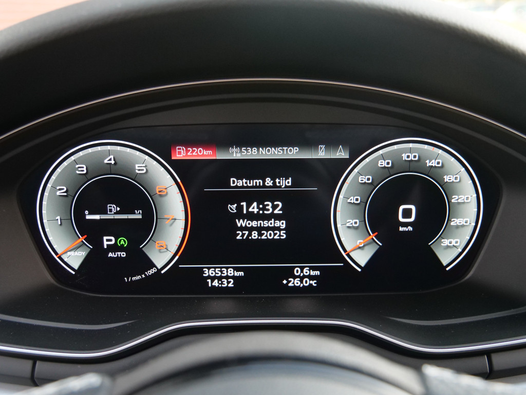 Praktisch, helder en uitermate handig is het digitale dashboard. Alle functies haarscherp in beeld! Ook achter de auto geen verrassingen bij het inparkeren. Daarvoor zorgt de achteruitrijcamera. Uw smartphone wordt een dashboard, met alle functies in beeld. Dankzij Connected Services en de speciale app. Een optie die de veiligheid verhoogt, is de bediening vanaf het stuur van het audio-installatiesysteem (met DAB-radio!) en het full map navigatiesysteem. Als u wilt kunt u beiden zelfs met uw stem bedienen. De auto is ook uitgevoerd met electronic climate control. Deze Audi is voorzien van WIFI-hotspot, schakelpaddles aan het stuur, cruise control, automatisch dimmende binnenspiegel, centrale deurvergrendeling met afstandsbediening en boordcomputer.