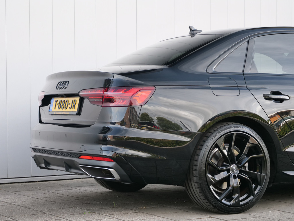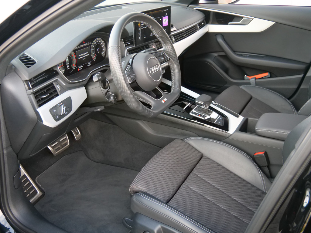 Het interieur van deze Audi A4 Limousine beschermt u als een veilige cocon. Het onderstel is ontworpen om de scherpste bochten en de slechtste wegen aan te kunnen en de motor reageert alert op ieder commando. Mag het een beetje exclusief en sportief? Mooi, want deze is uitgevoerd met S-Line styling. De aandrijving van deze Audi wordt verzorgd door een viercilinder benzinemotor en een automatische transmissie. Chauffeur en bijrijder zitten stabiel in de scherpe bochten door de sportstoelen. Bij de uitrusting van deze auto horen onder meer 19 inch lichtmetalen velgen, LED koplampen, sportonderstel, halflederen bekleding, warmtewerend glas en in delen neerklapbare achterbank.