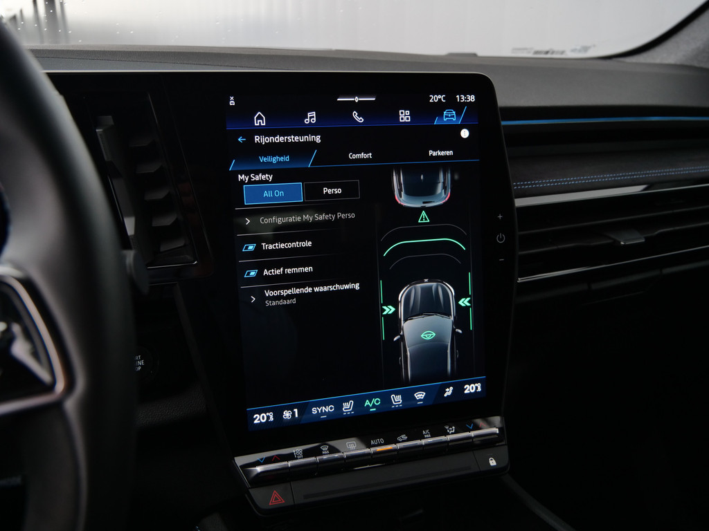 Met de nieuwste technologieën aan boord is deze Renault in staat om zelf te reageren op potentieel gevaarlijke situaties op de weg. Het Lane-keeping systeem zorgt voor een automatisch constante positie binnen de rijstrook. Afdwalen is uitgesloten. Rijdt een ander voertuig in uw dode hoek dan waarschuwt het systeem met een signaal. Voor meer veiligheid detecteert deze auto het risico van een aanrijding tijdig via de forward collision warning. De auto is ook uitgerust met hill hold functie, brake assist, vermoeidheidsherkenning en bandenspanningcontrolesysteem.