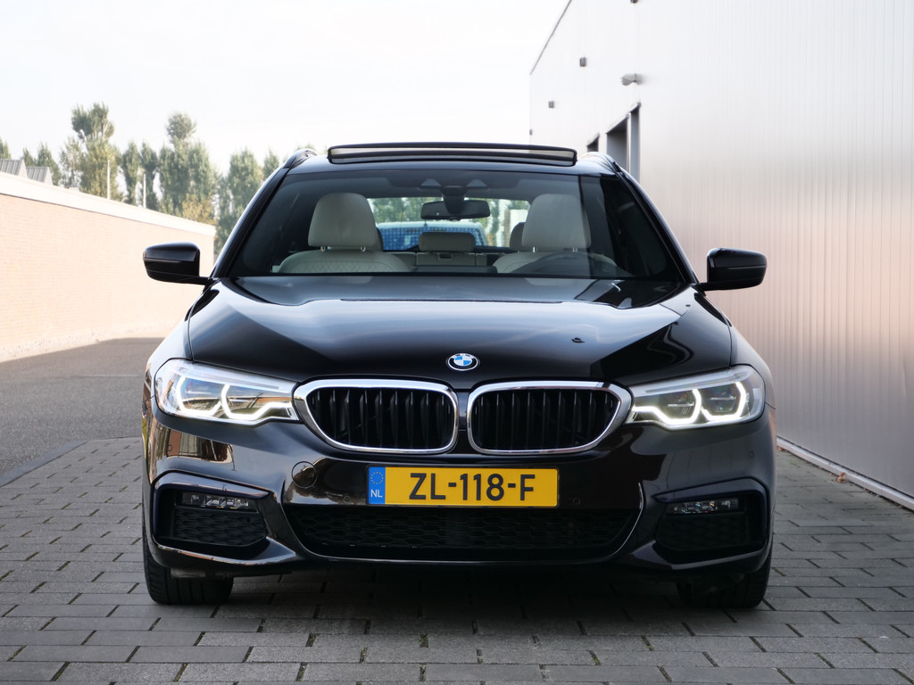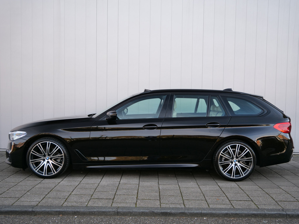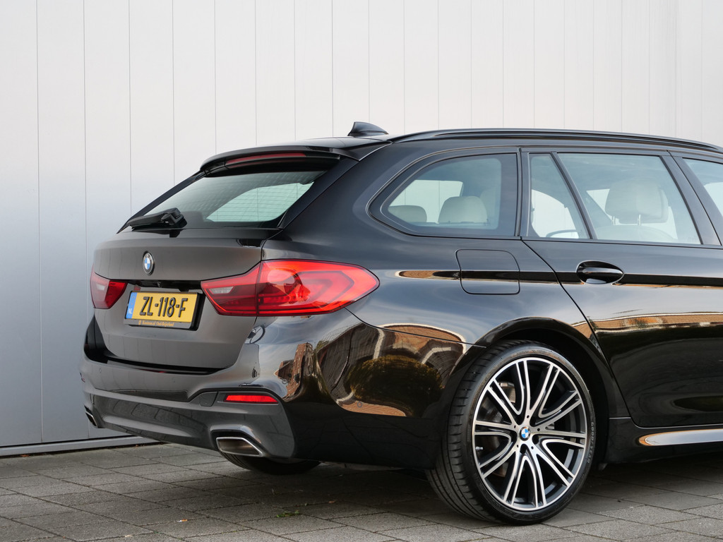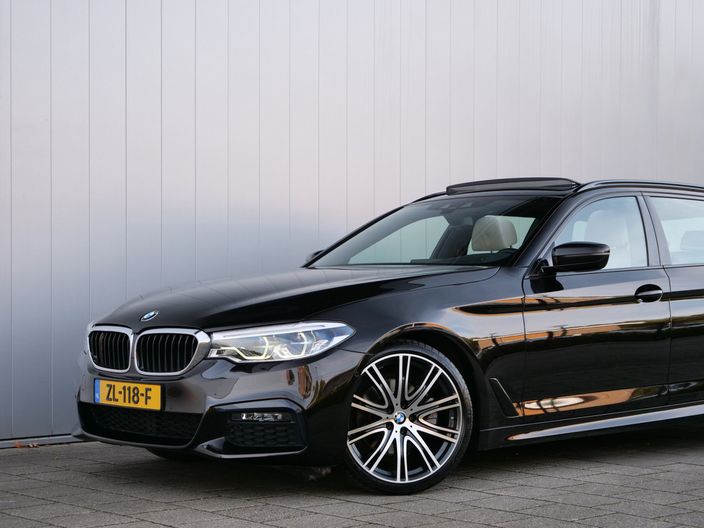 Ontspannen en zorgeloos autorijden, dat doet u met deze BMW 5-serie Touring. De krachtige benzinemotor staat garant voor uitstekende prestaties. Een fraai lederen interieur, dat in daglicht baadt dankzij het elektrisch bediende glazen panorama dak. En voor 'handsfree' in- en uitladen vindt u aan de achterzijde de elektrisch bedienbare achterklep. Dankzij de elektrische stoelbediening is het gemakkelijk om de optimale zitpositie te vinden. Tot de uitrusting van deze BMW behoren ook 20 inch lichtmetalen velgen, LED koplampen, sportonderstel, in delen neerklapbare achterbank, verstelbare lendensteunen en snelheidsafhankelijke stuurbekrachtiging.