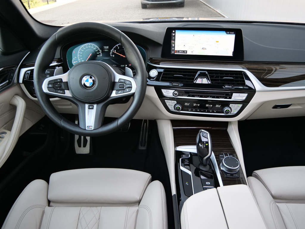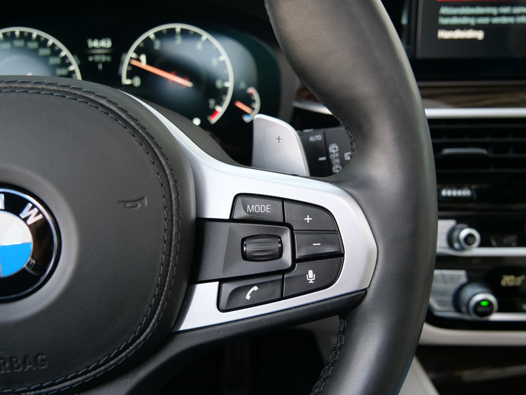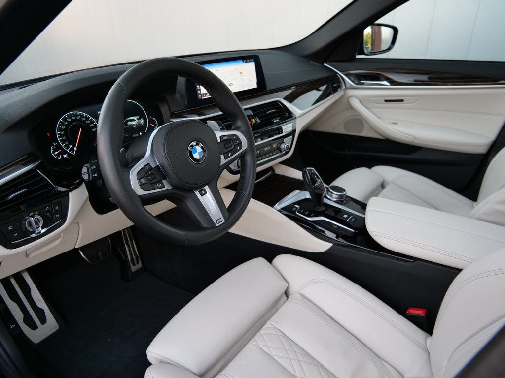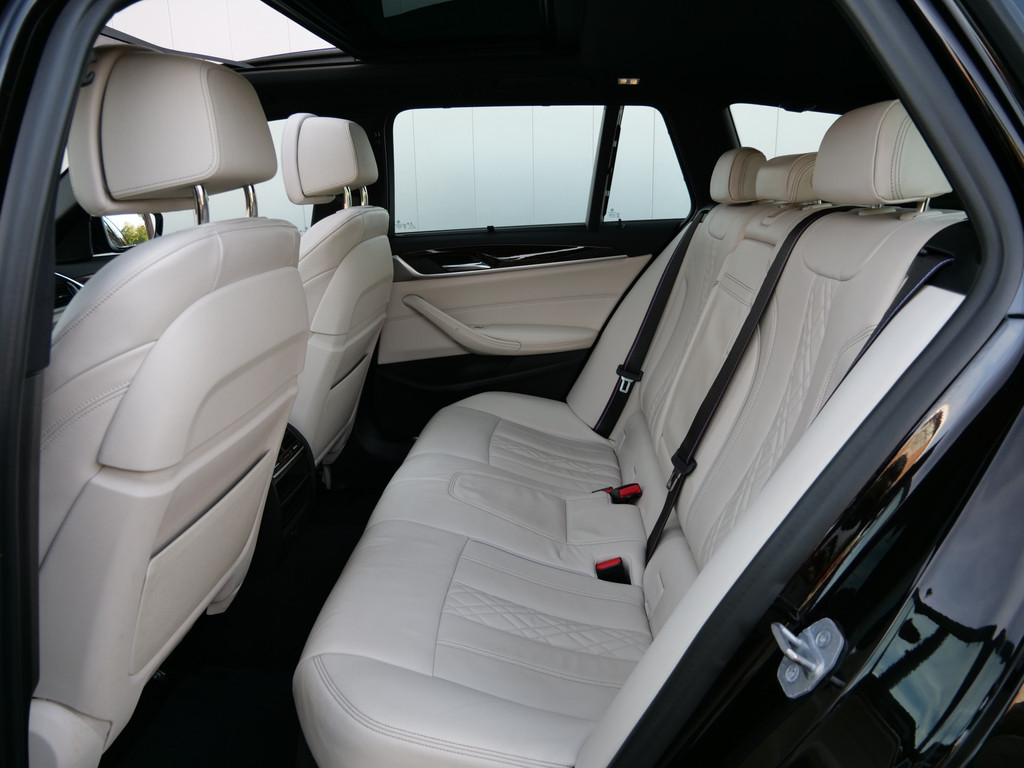 Ontspannen en zorgeloos autorijden, dat doet u met deze BMW 5-serie Touring. De krachtige benzinemotor staat garant voor uitstekende prestaties. Een fraai lederen interieur, dat in daglicht baadt dankzij het elektrisch bediende glazen panorama dak. En voor 'handsfree' in- en uitladen vindt u aan de achterzijde de elektrisch bedienbare achterklep. Dankzij de elektrische stoelbediening is het gemakkelijk om de optimale zitpositie te vinden. Tot de uitrusting van deze BMW behoren ook 20 inch lichtmetalen velgen, LED koplampen, sportonderstel, in delen neerklapbare achterbank, verstelbare lendensteunen en snelheidsafhankelijke stuurbekrachtiging.