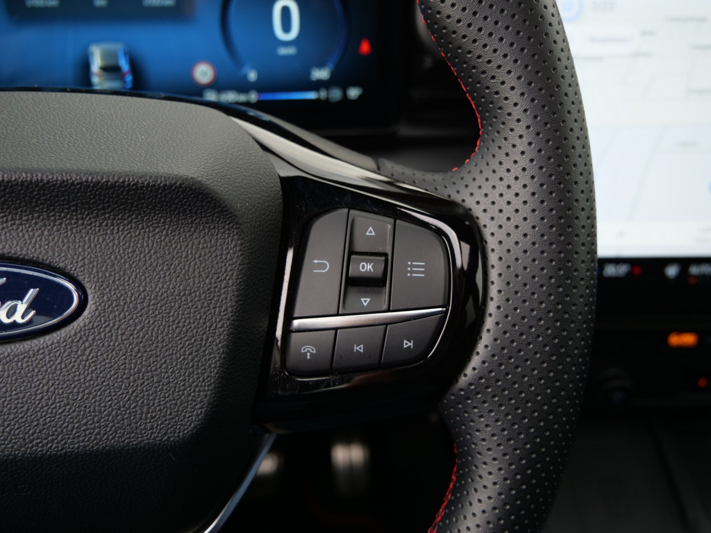 Alle functies voor een veilige en zuinige rit worden overzichtelijk weergegeven op het digitale dashboard. Een handige optie is de achteruitrijcamera. Achteruitrijden, inparkeren en manoeuvreren gaat gemakkelijker dan ooit. Als u de adaptive cruise control inschakelt, regelt de auto zelf de snelheid en de afstand tot de auto voor u. Als u regelmatig met een aanhanger of een fietsendrager op pad bent, is de afneembare trekhaak een praktische extra. Dankzij Connected Services heeft u overal en altijd uw dashboard op zak. Alle belangrijke functies zijn te checken via de app. U bent in deze Ford ook voorzien van dashboard met spraakbediening, Bang & Olufsen sound system, full map navigatiesysteem, automatische airconditioning, draadloos opladen en DAB ontvangst.