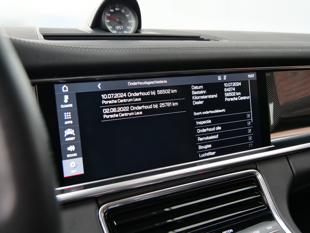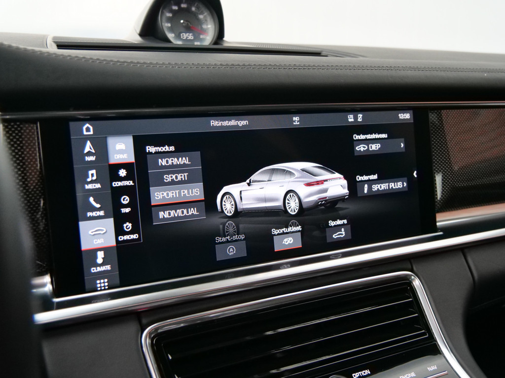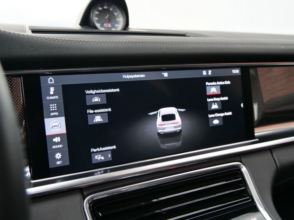 Zoals u mag verwachten van deze Porsche Panamera is hij uitgerust met een reeks aan actieve veiligheidssystemen. U rijdt ook veiliger omdat deze auto voor u de verkeersborden langs de weg kan lezen. De belangrijkste borden worden op uw instrumentarium geprojecteerd, zodat u ze niet kunt missen. Met het Lane-keeping systeem gaat u nooit onbedoeld over de streep. Forward collision warning is een automatisch waarschuwingssysteem dat direct in werking treedt bij gevaar voor een kop-staartbotsing. Dankzij veiligheidsvoorzieningen als dodehoekdetectie en bandenspanningcontrolesysteem, bent u steeds veilig onderweg.