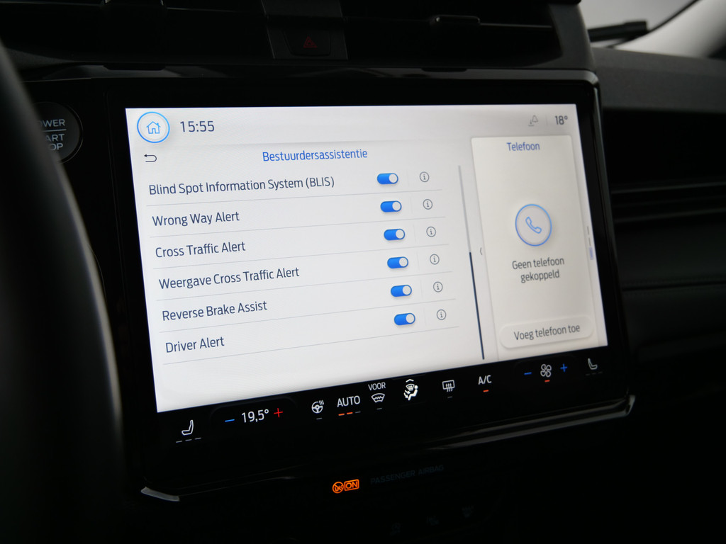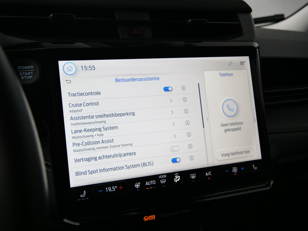 De automatische veiligheidssystemen in deze Ford fungeren als een extra paar ogen. En dat niet alleen, ze kunnen ook actief ingrijpen, om zo u en uw passagiers te beschermen. U rijdt ook veiliger omdat deze auto voor u de verkeersborden langs de weg kan lezen. De belangrijkste borden worden op uw instrumentarium geprojecteerd, zodat u ze niet kunt missen. Met het Lane-keeping systeem gaat u nooit onbedoeld over de streep. Op een kop-staartbotsing zit niemand te wachten. Daarom is de forward collision warning onderweg constant alert en berekent via een sensor de veilige afstand tot voorliggers. De veiligheid van deze auto wordt verder verhoogd door dodehoekdetectie, hill hold functie, brake assist en bandenspanningcontrolesysteem.