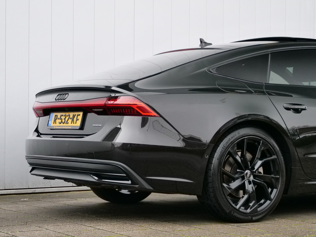Stoer staal en superieure rijprestaties: dan weet u dat u met een Duits topmerk te maken heeft. De krachtige benzinemotor staat garant voor uitstekende prestaties. Dat noemen ze nou een ruimtelijk effect: het elektrisch bediende glazen panorama dak, dat net zo gemakkelijk open en dicht gaat als de elektrisch bedienbare achterklep. En ondertussen het ware luxegevoel van het lederen interieur. Deze Audi A7 Sportback heeft niet alleen verwarmbare voorstoelen, maar ze zijn ook nog eens voorzien van massagefunctie. Dankzij de elektrische stoelbediening is het gemakkelijk om de optimale zitpositie te vinden. Ook achterin is iedereen snel op temperatuur door de verwarmde achterbank. Voorzien van matrix LED-verlichting. De auto dimt precies dat deel van de lichtstraal waar de voor- of tegenliggers in rijden. De overige segmenten blijven aan en verlichten de weg. U wordt in deze auto ook getrakteerd op 20 inch lichtmetalen velgen, warmtewerend glas, in delen neerklapbare achterbank, LED-achterlichten en verstelbare lendensteunen.