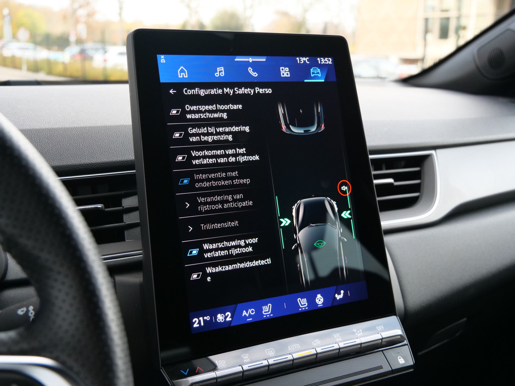 De geavanceerde technologie in deze Renault is in staat om onderweg het verkeer om u heen te monitoren en er op te reageren. Zo hebt u als het ware een automatische co-piloot aan boord. Het Lane-keeping systeem doet precies wat nodig is: waarschuwen en corrigeren bij onbedoelde overschrijding van de rijstrooklijnen. De forward collision warning reduceert het gevaar van een botsing met een voorligger significant. De veiligheidssystemen in deze auto nemen het zelfs waar als de bestuurder tekenen van vermoeidheid vertoont, en waarschuwen dan met een duidelijk signaal. Met voorzieningen als autonoom remsysteem en bandenspanningcontrolesysteem, bent u altijd veilig onderweg.