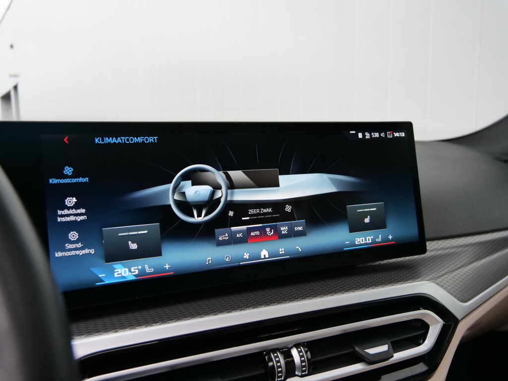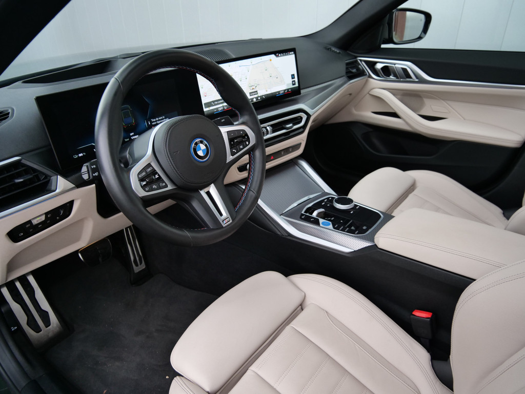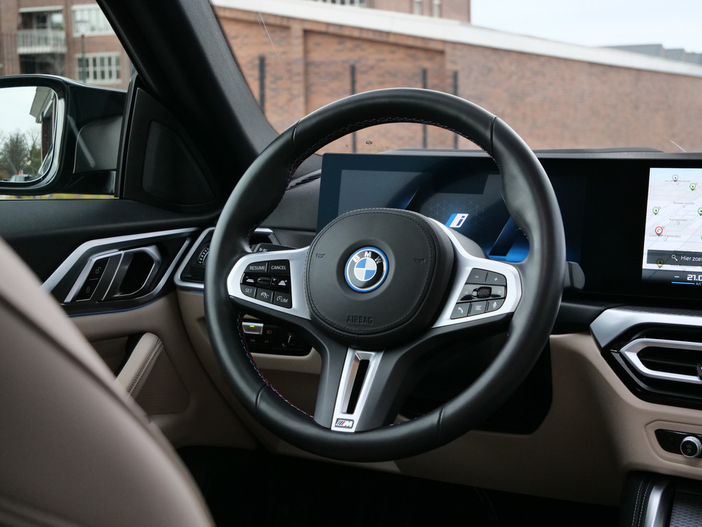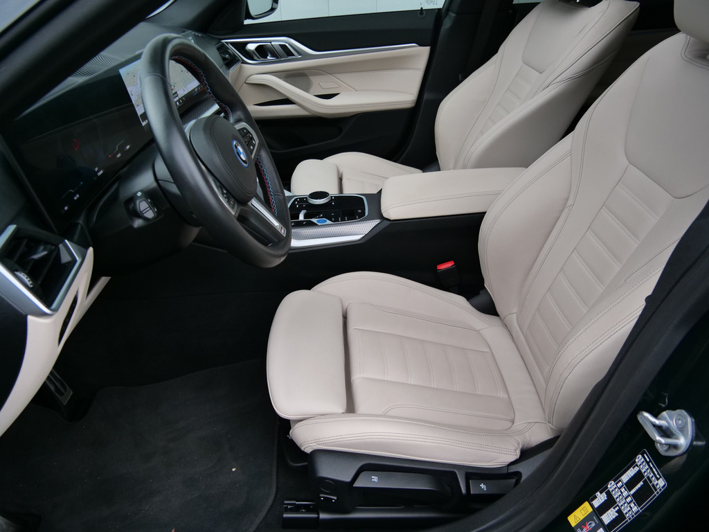Het maakt niet uit of u voor de vormgeving of voor de elektrische aandrijving valt. Met de BMW i4 zit u altijd goed. Met de elektromotor zoeft u fluisterzacht over de weg. Een krachtige motor geeft deze auto zijn sportieve prestaties. De auto is voorzien van leren bekleding - een fraaie en sfeerverhogende extra. In de verwarmbare voorstoelen zitten is elke keer een welkom gevoel. Goeie looks? Jazeker! Maar de sportstoelen zorgen ook voor een goed gesteunde en comfortabele zit. Het daglicht valt in overvloed via het elektrisch bediende panoramadak op het fraaie interieur. De achterklep opent automatisch met een druk op de knop. Handig als u met volle handen staat. Tot de voorzieningen van deze auto behoren 19 inch lichtmetalen velgen, LED koplampen, adaptief dempingsysteem, donker getint glas achter, in delen neerklapbare achterbank en LED-achterlichten.