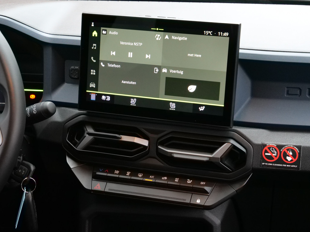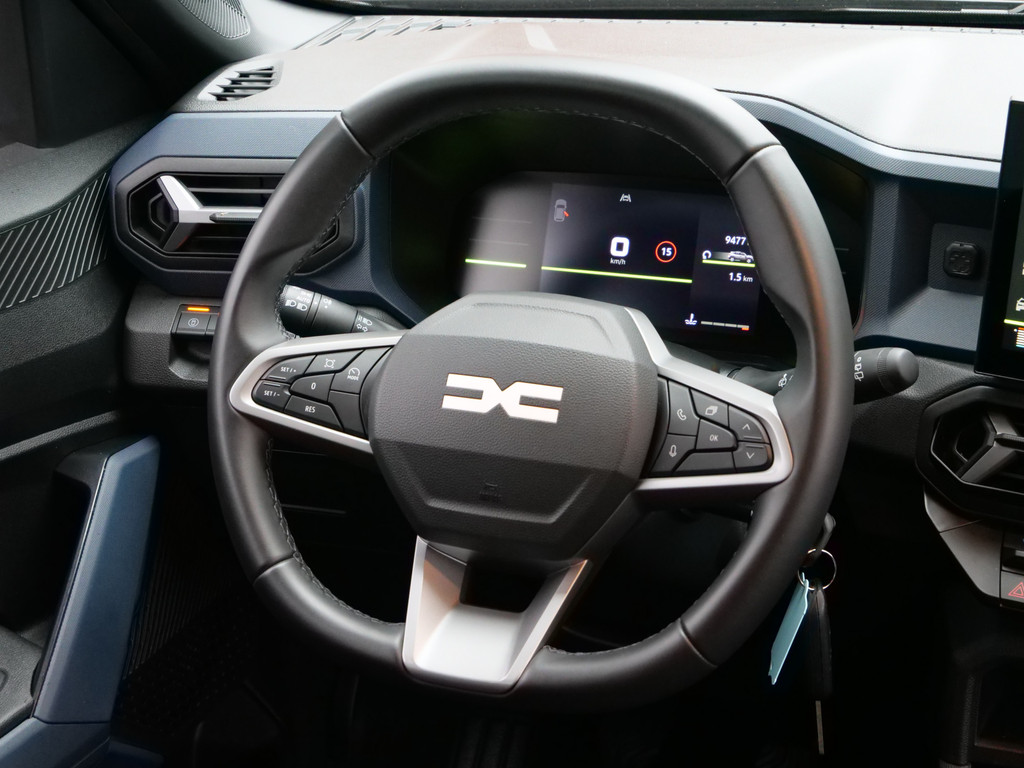 Snelheid, brandstofinfo, noem maar op. Het digitale dashboard houdt u permanent op de hoogte. Goed en overzichtelijk. Soepel inparkeren gaat gemakkelijker dan u verwacht dankzij de achteruitrijcamera. Het geluidssysteem is gemakkelijk en veilig te bedienen vanaf het stuur. Voor een storingvrije radio-ontvangst zorgt de ingebouwde DAB-ontvanger. Het hoort bij een intelligente auto als deze dat hij zelf in staat is om zijn omgeving in de gaten te houden. Dat doet deze Dacia met een automatisch inschakelbare verlichting en een regensensor. En deze auto heeft ook cruise control, boordcomputer en verstelbaar stuur als standaard uitrusting.