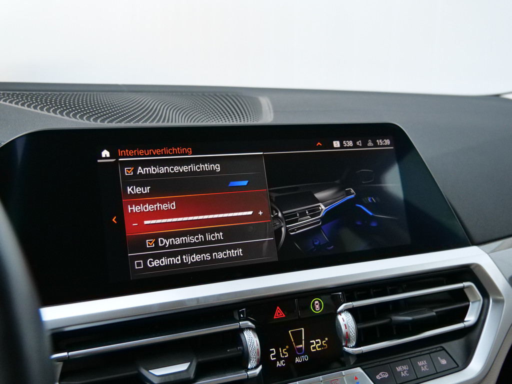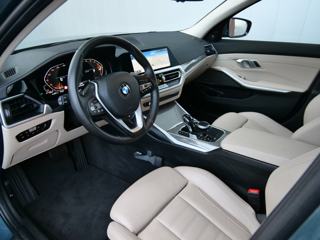 Natuurlijk brengt het digitale dashboard alle ritinformatie perfect in beeld. Maar ook communicatie, navigatie en tal van andere functies zijn permanent te volgen. Door het combineren van beelden van vier camera's, biedt de 360 graden camera een naadloos en gedetailleerd beeld van de hele omgeving rondom deze auto. Hoe is het met de banden, de accu en andere onderdelen? Connected Services maakt het inzichtelijk, 24/7 via de app. De sensatie van superieur geluid wordt geleverd door het high performance audiosysteem. Nieuwe smartphones hebben geen snoeren meer nodig om op te laden. Daarom heeft deze BMW 3-serie een draadloze oplaadmogelijkheid voor telefoons waarmee u onderweg simpel en effectief voor een volle accu zorgt. Ook dashboard met spraakbediening, navigatiesysteem met harde schijf, electronic climate control, DAB ontvangst, regensensor en cruise control horen tot de voorzieningen op deze auto.