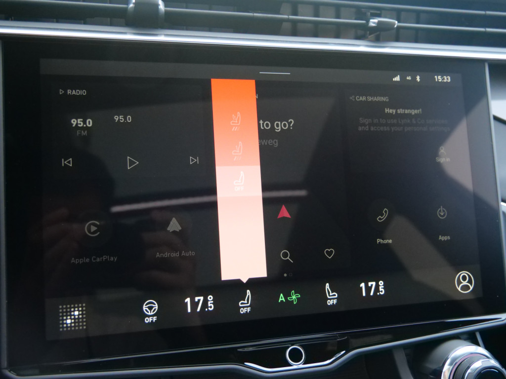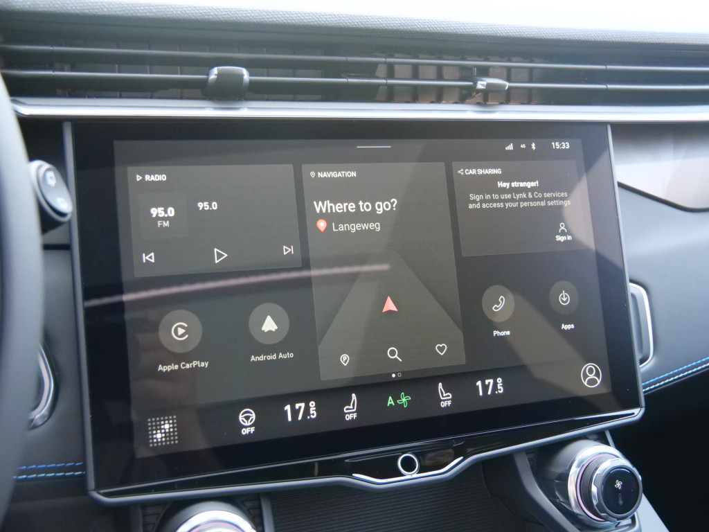 Alle functies die u onderweg nodig heeft, worden permanent geregistreerd en zijn afleesbaar op het digitale dashboard. Adaptive cruise control is een comfortabele en veilige optie. Het systeem reguleert de snelheid en houdt automatisch afstand tot uw voorligger. Rijden-stilstaan, rijden-stilstaan. Niks is irritanter en vermoeiender dan filerijden. Daar heeft deze Lynk & Co 01 een oplossing voor: de file assistent, die met radarmeting permanent het tempo aanpast op de voorligger. Zelfs als die stopt. De auto is voorzien van een trekhaak en is een uitstekende caravantrekker. Laat u onderweg niet afleiden, de bediening van het audio-installatiesysteem en ook het full map navigatiesysteem gaat met knoppen op het stuur en met spraak. Natuurlijk is de audio-installatie voorzien van DAB-ontvangst. Ook WIFI-hotspot, achteropkomend verkeer waarschuwing, automatische airconditioning, draadloos opladen, parkeersensoren achter en regensensor zijn aan boord.