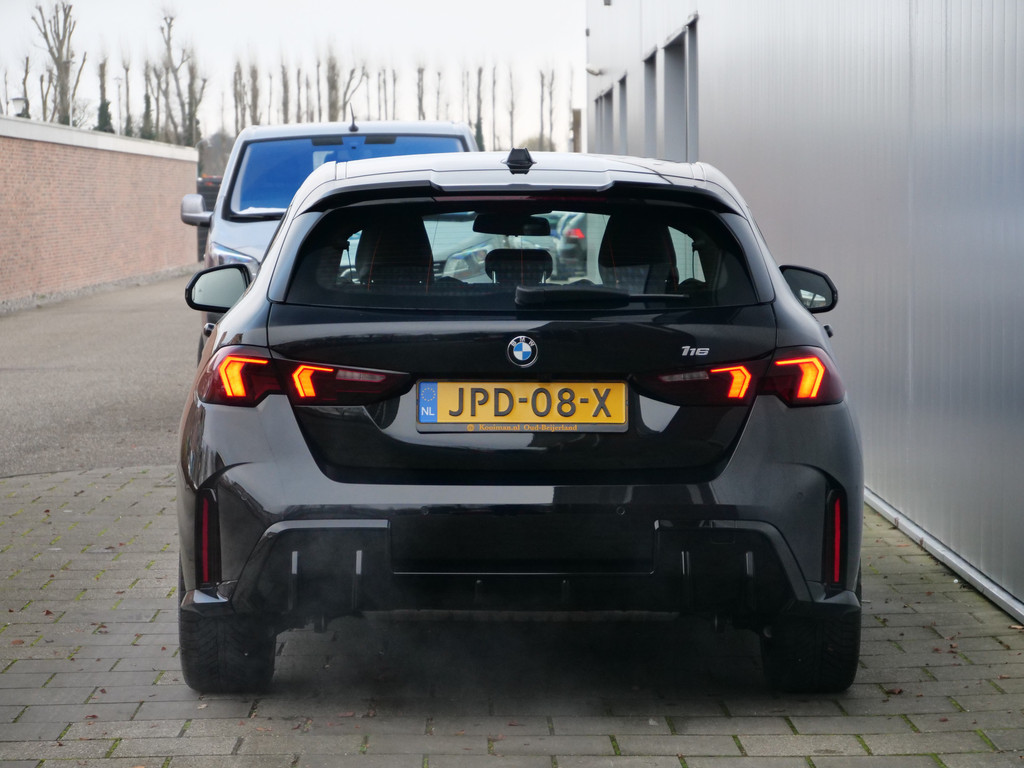 Met het digitale dashboard van deze auto is de aanpassing van uw cockpitinterface een fluitje van een cent. Zelfs een kleine aanrijding kan flinke kosten veroorzaken. Gelukkig laat de achteruitrijcamera precies zien wat er zich achter de auto bevindt en geeft een waarschuwingssignaal. Zoals u van zo'n jonge auto mag verwachten, zijn hier ook de geavanceerde remote services aanwezig. Simpelweg met een app op uw smartphone controleert u op afstand de status van de auto en bedient u diverse functies. Het is veiliger om altijd uw ogen op de weg te houden en uw handen aan het stuur; daarom is dit voertuig uitgerust met een audio-installatiesysteem met DAB-ontvangst en een full map navigatiesysteem dat kan worden bediend via het stuurwiel of spraakbediening. Geen onnodige spaghetti van oplaadsnoertjes voor de smartphone: deze BMW 1-serie heeft een draadloze oplaadmogelijkheid voor telefoons. Ook WIFI-hotspot, achteropkomend verkeer waarschuwing, automatische airconditioning, schakelpaddles aan het stuur, regensensor en cruise control horen tot de voorzieningen op deze auto.