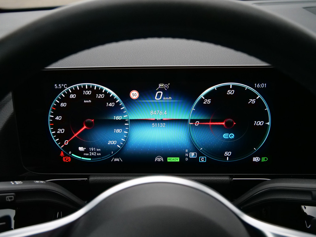 Het digitale dashboard is qua lay-out en zichtbaarheid superslim ingedeeld. Alle functies in één keer in beeld! De achteruitrijcamera brengt precies in zicht wat zich achter u bevindt en toont een glashelder beeld op hoge resolutie. Een geluidssignaal waarschuwt hoeveel ruimte u nog heeft. De conditie van deze auto is 24/7 inzichtelijk dankzij Connected Services. Terwijl het navigatiesysteem met harde schijf de ideale route voor u uitstippelt, geniet u van de kwaliteit van het audiosysteem met DAB-ontvangst. De bediening is bovendien gemakkelijk via knoppen op het stuur of via spraak. Telefoonaccu in het rood? Laad 'm simpel op met de draadloze oplaadmogelijkheid voor telefoons. De uitrusting van deze Mercedes-Benz is met electronic climate control, regensensor, cruise control, sportstuurwiel, keyless entry en automatisch dimmende buitenspiegels behoorlijk compleet.
