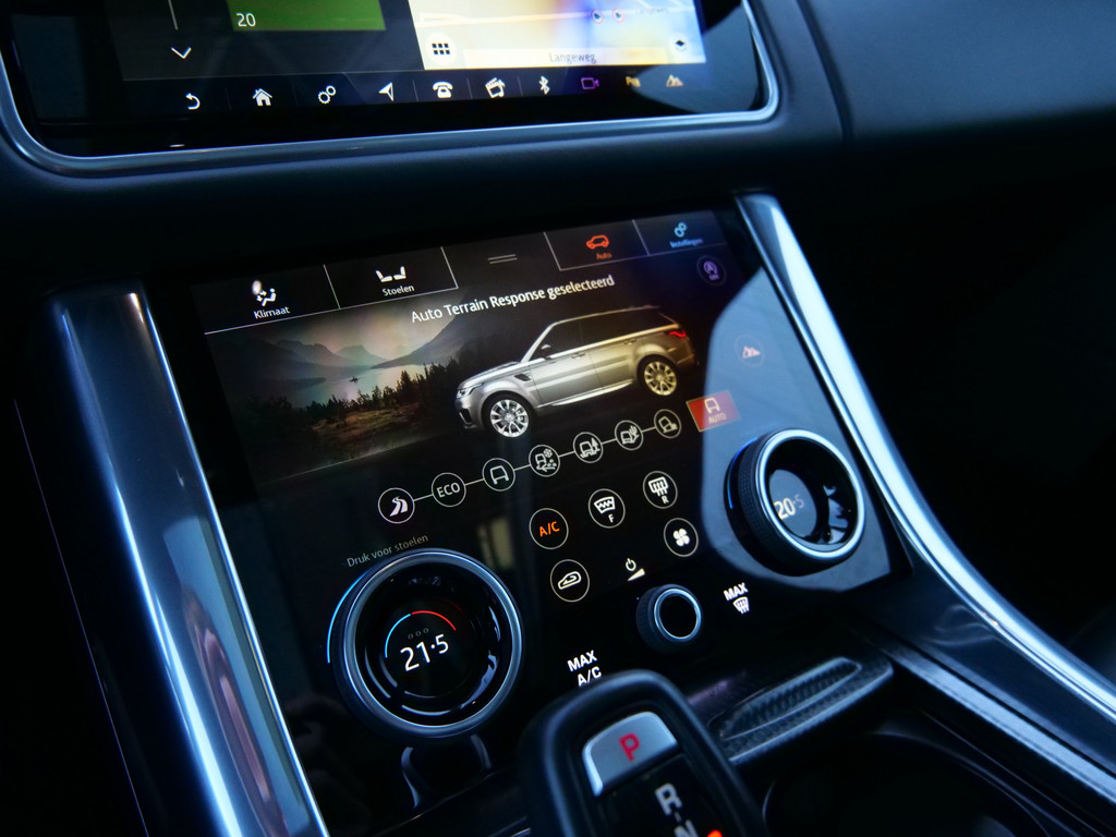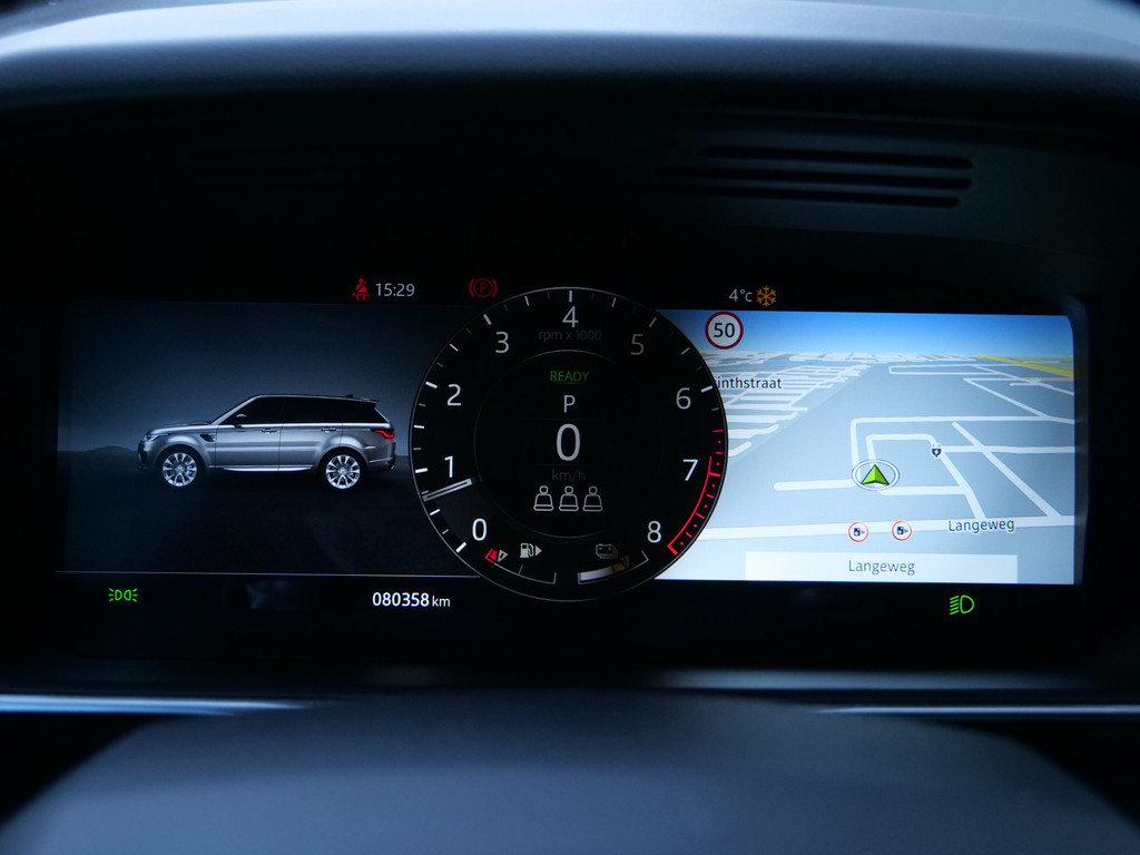 Het systeem controleert alle belangrijke functies en geeft die perfect weer via het digitale dashboard. Bij het inparkeren laat de achteruitrijcamera precies zien hoeveel meter... decimeter... centimeter ruimte er nog is! Deze Land Rover Range Rover Sport is 'connected'. Belangrijke functies worden permanent gemeten en zijn uit te lezen via een speciale app, ook op afstand. Uw favoriete muziek klinkt beter dan ooit met het ingebouwde high performance audiosysteem. Of het buiten nu warm is of koud, dankzij electronic climate control is het binnen altijd behaaglijk. Deze Land Rover is voorzien van dashboard met spraakbediening, full map navigatiesysteem, schakelpaddles aan het stuur, DAB ontvangst, regensensor en cruise control.
