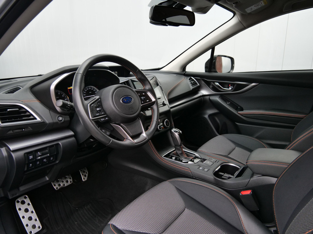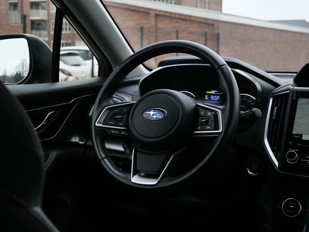 Wat een gemak, die achteruitrijcamera. Alles in beeld zonder capriolen. Met adaptive cruise control houdt de auto zelfstandig afstand tot uw voorligger. Een veiligheidsverhogende optie waarmee u comfortabel onderweg bent. Een veiligheidsverhogende optie is de ingebouwde spraakbediening. Terwijl u uw ogen op de weg houdt, bedient u de auto met uw stem. Met de routebegeleiding van het full map navigatiesysteem kunt u zich volledig op het verkeer concentreren. U verwacht natuurlijk electronic climate control in deze auto, en die is er dan ook. Ook is de Subaru uitgerust met: schakelpaddles aan het stuur, DAB ontvangst, regensensor, keyless entry en automatisch dimmende binnenspiegel.