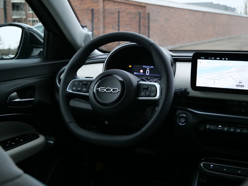 Zoals u mag verwachten van deze Fiat 600 is hij uitgerust met een reeks aan actieve veiligheidssystemen. In het instrumentarium kunt u bovendien de verkeersborden zien die u onderweg tegenkomt. Zo helpt deze Fiat u om veiliger te rijden. Op lange ritten voorkomt de vermoeidheidsassistent dat uw concentratie afneemt. De auto is ook uitgerust met dodehoekdetectie en autonoom remsysteem.