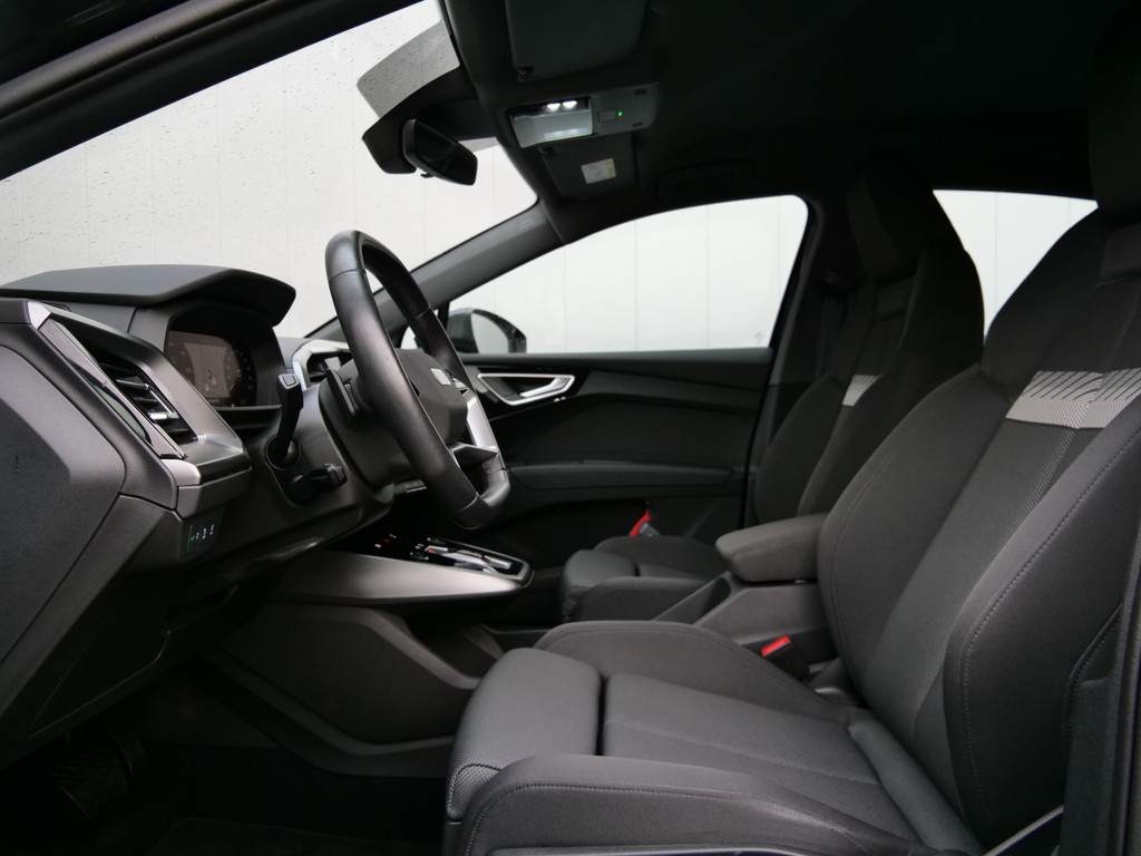 Duurzaam en dynamisch, de Audi Q4 Sportback e-tron verenigt deze twee uitersten in zich. Dit is een auto uit 2023, er staat 37412 kilometer op de teller. De prestaties van de elektromotor kunnen de vergelijking met een brandstofmotor moeiteloos aan. De krachtige motor geeft deze Audi uitstekende prestaties. Op koude dagen voelt u zich snel behaaglijk op de verwarmbare stoelen. De bagageruimte is toegankelijk via een comfortverhogende elektrische achterklep. Opvallend is de geavanceerde matrix LED-verlichting met daglichtkwaliteit. De koplampen dimmen automatisch het deel van de lichtstraal waar voor- of tegenliggers in rijden. De overige segmenten blijven aan en verlichten de weg maximaal. Bij de uitrusting van deze Audi horen onder meer 19 inch lichtmetalen velgen, neerklapbare achterbank en LED-achterlichten.