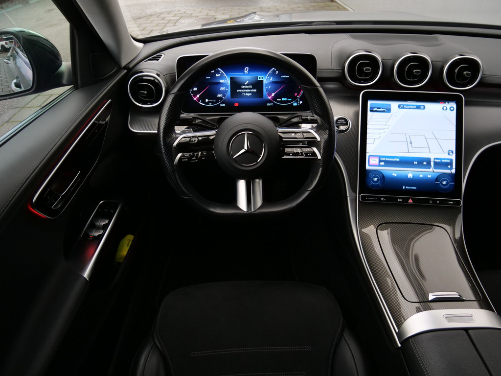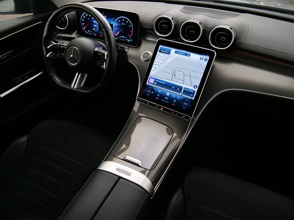 U leest alle belangrijke functies helder af dankzij het digitale dashboard. Boem is ho? Dat is verleden tijd. De achteruitrijcamera laat precies zien hoeveel ruimte u achter nog heeft! Spraaksturing is onderdeel van de uitrusting van deze auto. Met uw stem kunt u de belangrijkste voertuigfuncties bedienen. Deze Mercedes-Benz C-klasse is 'connected'. Belangrijke functies worden permanent gemeten en zijn uit te lezen via een speciale app, ook op afstand. De kortste weg, de zuinigste weg, de snelste weg... elke weg is te vinden met het full map navigatiesysteem. Ook is de Mercedes-Benz uitgerust met: automatische airconditioning, draadloos opladen, DAB ontvangst, regensensor, cruise control en sportstuurwiel.