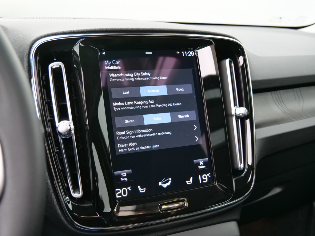 U geniet nog meer van het rijden met uw Volvo omdat u wordt beschermd door intelligente veiligheidssystemen. Onderweg zorgt verkeersborddetectie ervoor dat u geen waarschuwingsbord mist. Indien u onbedoeld de rijstrook lijkt te verlaten, reageert het Lane-keeping systeem meteen en corrigeert. Hoe goed u ook oplet in het verkeer, de dode hoek blijft een risico. Gelukkig is deze Volvo XC40 voorzien van actieve dodehoekdetectie. Verder is deze auto uitgerust met forward collision warning system, hill hold functie, brake assist, vermoeidheidsherkenning en bandenspanningcontrolesysteem.