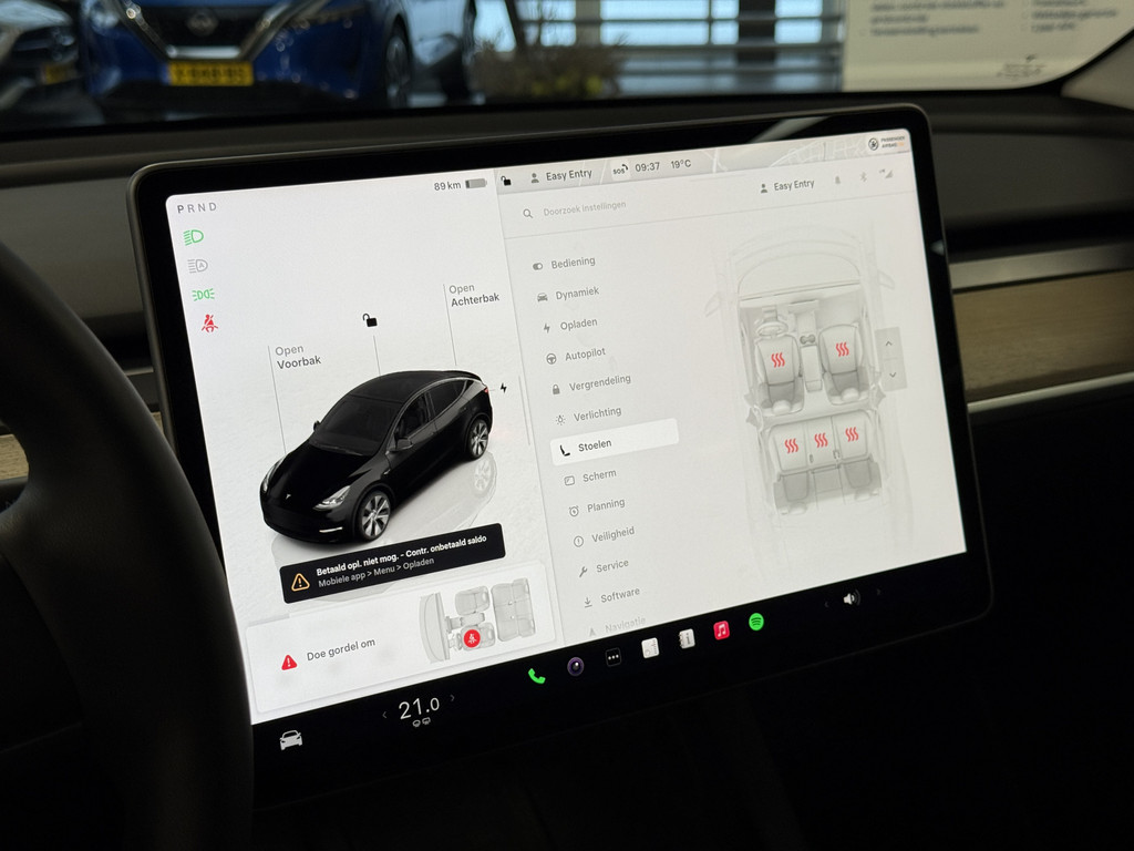 U zult het zien: overstappen naar elektrisch rijden kost u geen enkele moeite als u kiest voor deze Tesla Model Y. CO2-uitstoot? Met de elektromotor rijdt u stil en schoon! De krachtige motor geeft deze Tesla uitstekende prestaties. Neem plaats op de comfortabele stoelen. Dankzij de elektrische bediening en het geheugen is het eenvoudig om hierin de beste zitpositie te vinden. Het glazen panoramadak zorgt ervoor dat u zich omringd voelt door de omgeving. Voor en achter: iedereen dezelfde luxe. Vandaar de verwarmde achterbank.