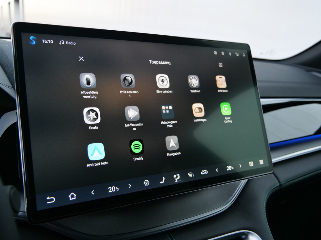 Het zal u verbazen hoe deze auto in staat is om voor u de omgeving en het verkeer om u heen in de gaten te houden. Snelheid en andere benodigde info hoeft u niet meer te bekijken op het dashboard. De head-up display projecteert de gegevens in de voorruit. In het instrumentarium ziet u tijdens de rit ook de belangrijkste verkeersborden aangegeven, die de auto automatisch voor u leest. Voorzien van het Lane-keeping systeem. Ofwel: blijf automatisch in je baan. In deze BYD vinden we verder een dodehoekdetectie, forward collision warning system, hill hold functie, brake assist, vermoeidheidsherkenning en bandenspanningcontrolesysteem.