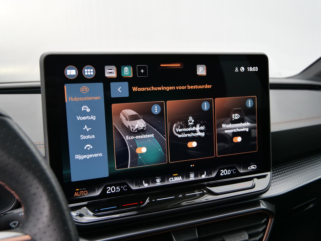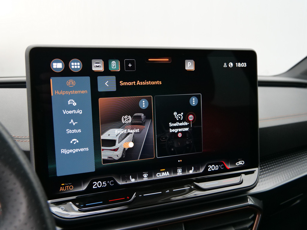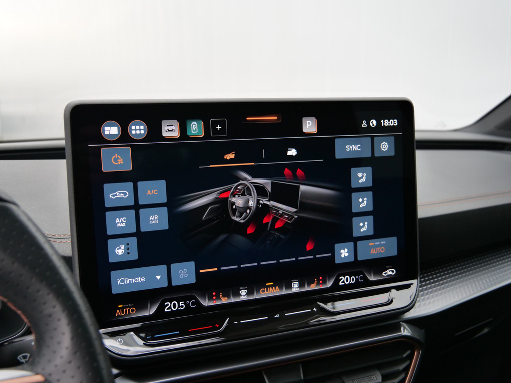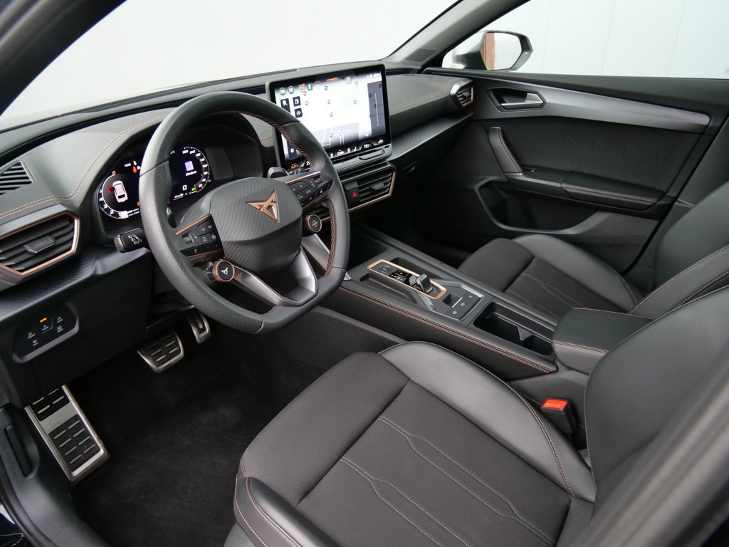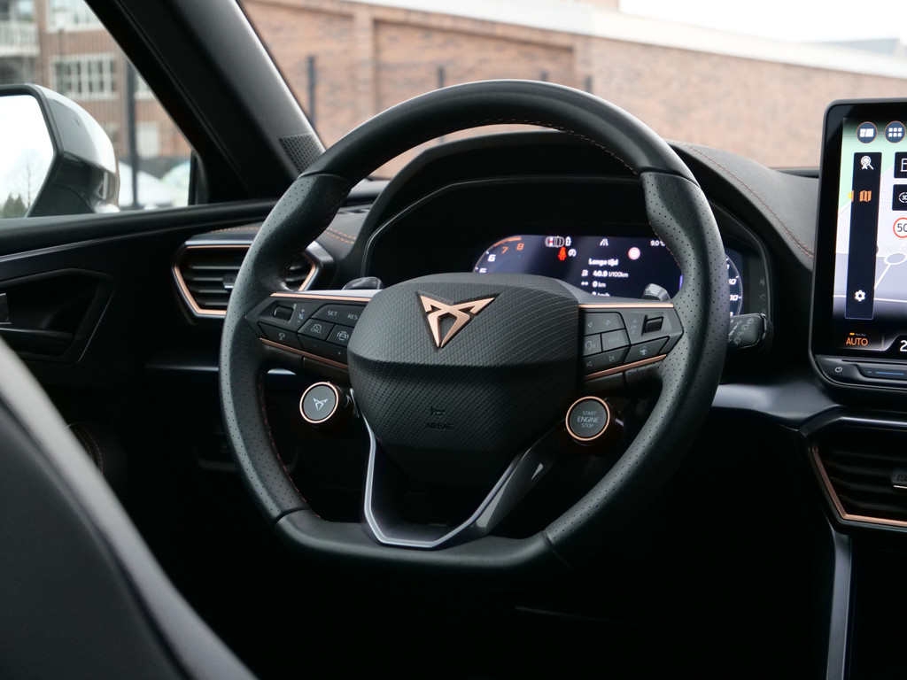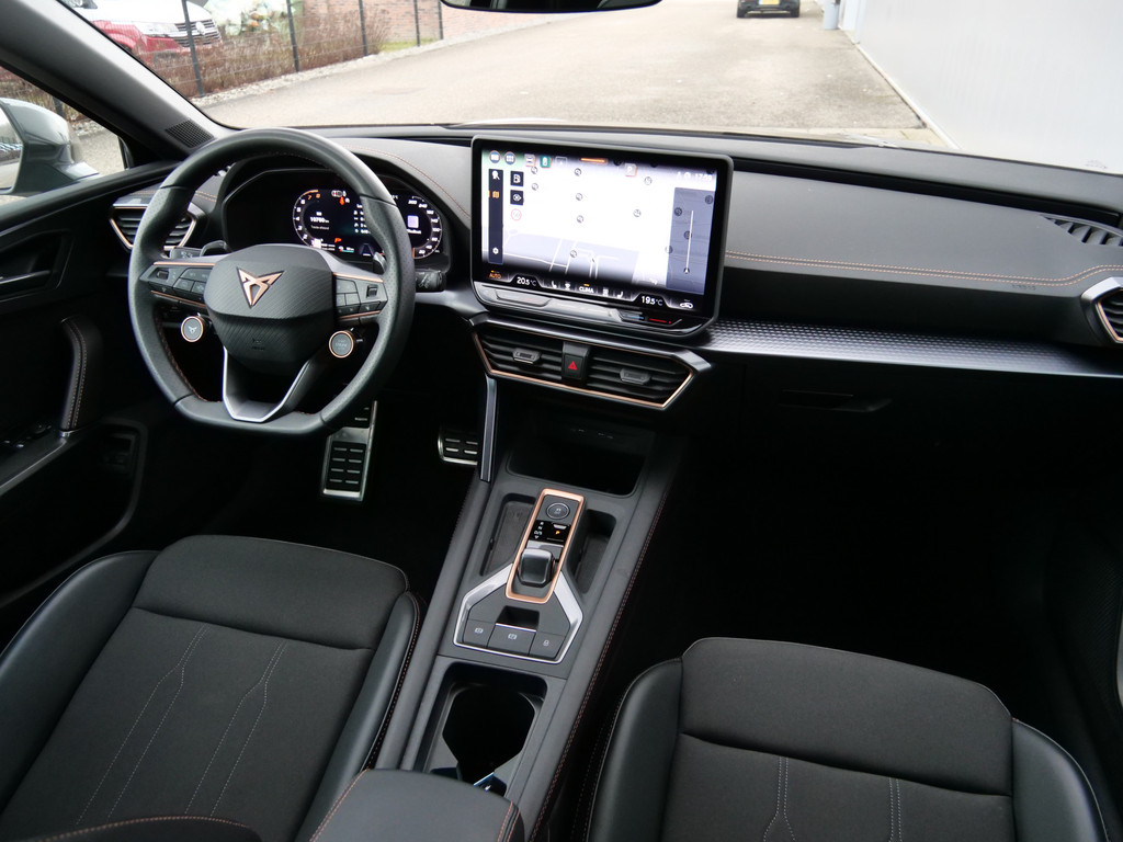 Alle functies voor een veilige en zuinige rit worden overzichtelijk weergegeven op het digitale dashboard. Ook achter de auto geen verrassingen bij het inparkeren. Daarvoor zorgt de achteruitrijcamera. Adaptive cruise control houdt de ingestelde snelheid vast en houdt afstand tot het voertuig voor u. In deze auto kunt u de belangrijkste functies bedienen met uw stem. U weet altijd hoe de auto eraan toe is dankzij Connected Services. Ook handig voor de garage en de wegenwacht. Even de app uitlezen en klaar! Deze CUPRA is voorzien van full map navigatiesysteem, electronic climate control, schakelpaddles aan het stuur, draadloos opladen, DAB ontvangst en regensensor.