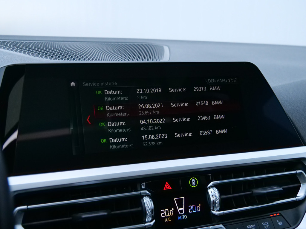 De nieuwste veiligheidssystemen komen in deze BMW 3-serie samen. U rijdt ook veiliger omdat deze auto voor u de verkeersborden langs de weg kan lezen. De belangrijkste borden worden op uw instrumentarium geprojecteerd, zodat u ze niet kunt missen. Ongemerkt buiten de rijstrook raken? Nee hoor, het Lane-keeping systeem waarschuwt en corrigeert. Het forward collision warning-systeem berekent via een sensor de afstand tot het verkeer vóór u en komt in actie als er gevaar bestaat van een botsing. De auto is ook uitgerust met head-up display, dodehoekdetectie, hill hold functie, brake assist, vermoeidheidsherkenning en bandenspanningcontrolesysteem.