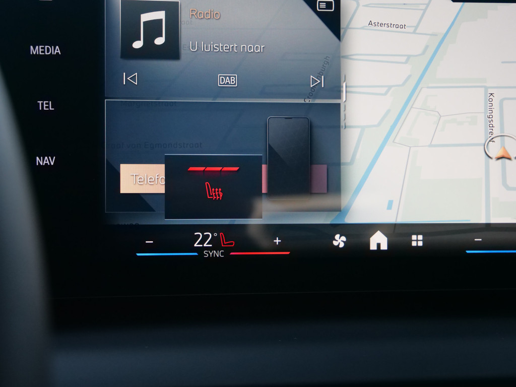 Het digitale dashboard vertelt u alles wat u wilt weten voor een slimme, comfortabele en veilige rit. Twijfelen hoeveel ruimte u achter de auto heeft? Met de achteruitrijcamera weet u altijd hoeveel centimeter! Kilometerstand? Oliepeil? Accuspanning? Allemaal te zien via de app. Overal. Altijd. Dankzij Connected Services. Het is veiliger om altijd uw ogen op de weg te houden en uw handen aan het stuur; daarom is dit voertuig uitgerust met een audio-installatiesysteem met DAB-ontvangst en een full map navigatiesysteem dat kan worden bediend via het stuurwiel of spraakbediening. Onderweg de smartphone opladen gaat helemaal zonder snoeren, door de draadloze telefoonlader. De uitrusting van deze BMW is met WIFI-hotspot, achteropkomend verkeer waarschuwing, automatische airconditioning, schakelpaddles aan het stuur, regensensor en cruise control behoorlijk compleet.