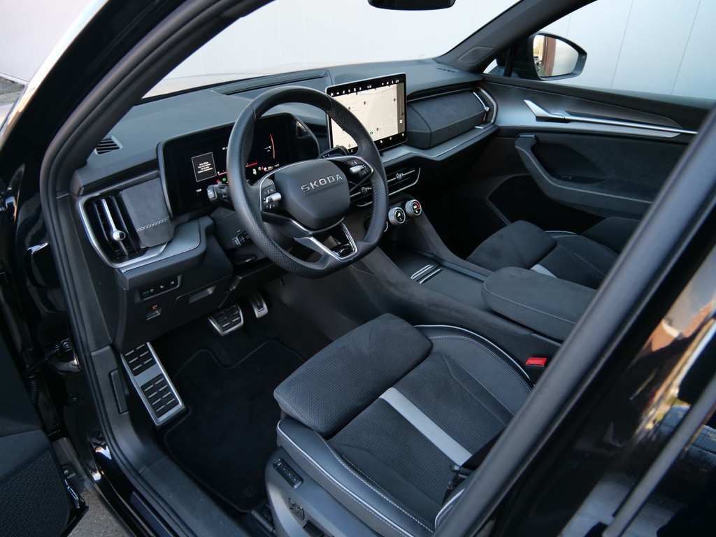 Hij toont sportief en zelfbewust, stijlvol en krachtig: deze ŠKODA Kodiaq dwingt respect af. Hij heeft een benzinemotor en een automatische transmissie. Deze ŠKODA Kodiaq heeft verwarmbare voorstoelen, voor zowel bestuurder als bijrijder. Zijwaartse g-krachten worden solide opgevangen door de sportstoelen. Een handige voorziening op deze auto is de elektrische achterklep die u op afstand kunt openen. Luxepaardjes en levensgenieters worden enthousiast van de verwarmde achterbank. Met matrix LED-verlichting rijdt u eigenlijk altijd met groot licht, dus maximaal zicht. Toch is verblinden er niet bij, want het systeem regelt de verlichting zo dat tegenliggers er geen last van hebben. Ook is de auto voorzien van: 19 inch lichtmetalen velgen, geluidsisolerende ramen, dakspoiler, in delen neerklapbare achterbank en LED-achterlichten.