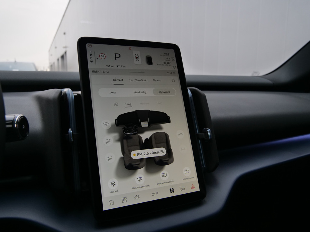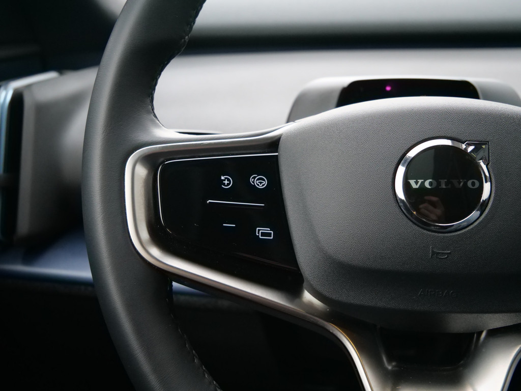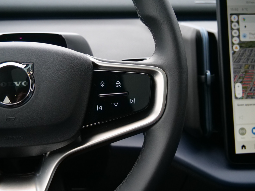 Natuurlijk brengt het digitale dashboard alle ritinformatie perfect in beeld. Maar ook communicatie, navigatie en tal van andere functies zijn permanent te volgen. Met de hulp van vier camera's, biedt de 360 graden camera op deze auto een panoramisch zicht, wat bijzonder nuttig is bij het parkeren en manoeuvreren. De jeugd is niet los te maken van hun smartphone, en dat zie je ook aan deze jonge auto. Via een speciale app staat u overal en altijd in contact met uw vierwieler. Superhandig! De hoorbare sensatie van het high performance audiosysteem is een ervaring op zich. Geen onnodige spaghetti van oplaadsnoertjes voor de smartphone: deze Volvo EX30 heeft een draadloze oplaadmogelijkheid voor telefoons. Deze auto is voorzien van dashboard met spraakbediening, navigatiesysteem, WIFI-hotspot, kruisend verkeer detectie, electronic climate control en DAB ontvangst.