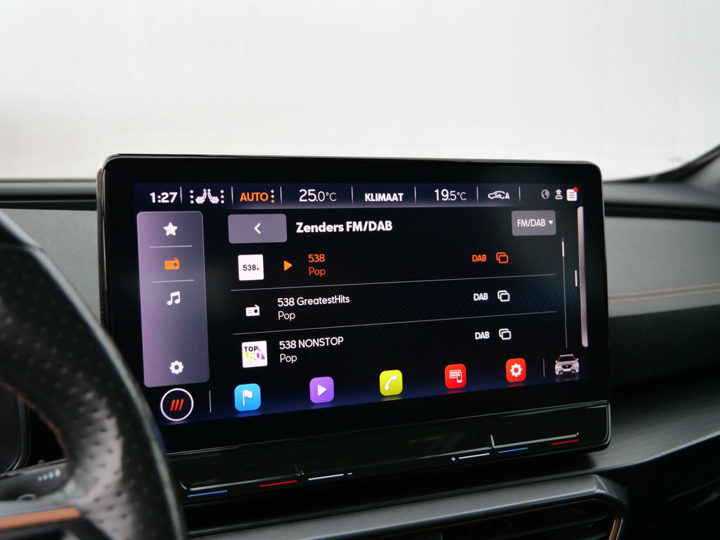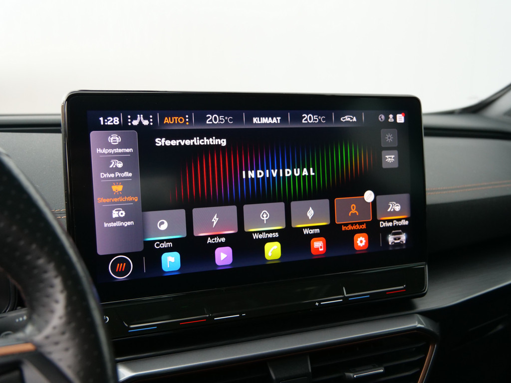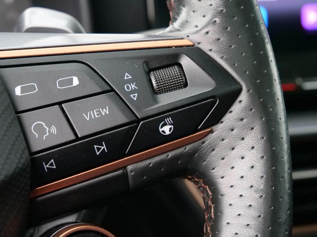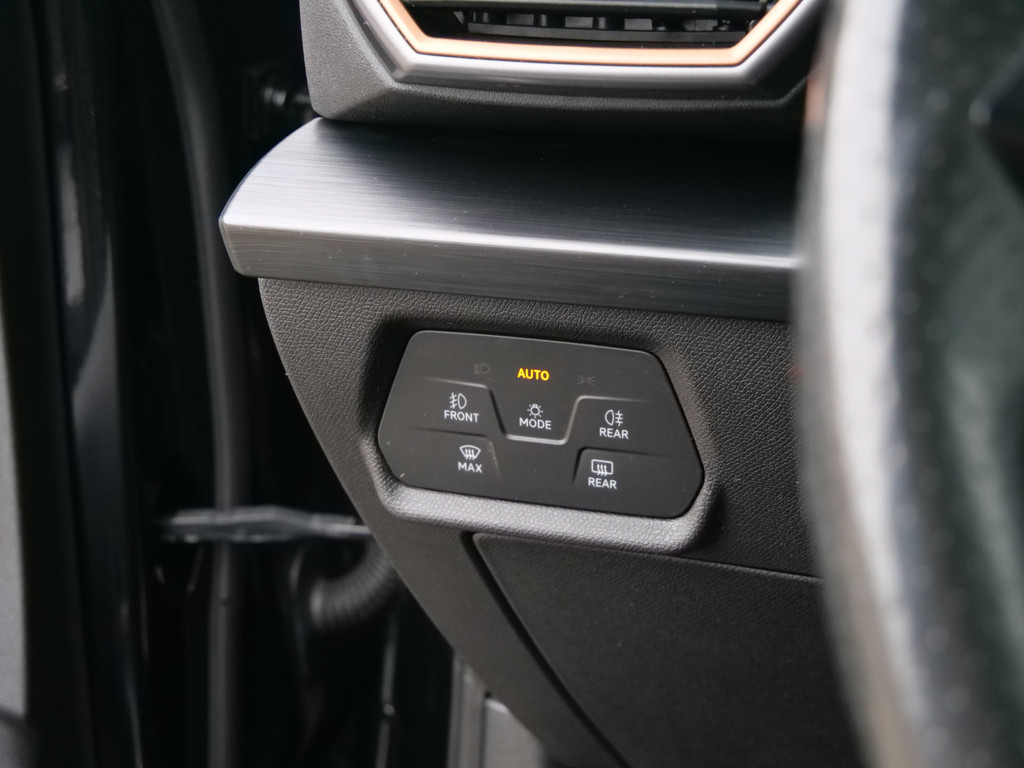 Zoals u mag verwachten van deze CUPRA Formentor is hij uitgerust met een reeks aan actieve veiligheidssystemen. Dat de auto steeds meer taken van de bestuurder overneemt, merkt u bijvoorbeeld aan het systeem voor verkeersbord-detectie in deze auto. Indien u onbedoeld de rijstrook lijkt te verlaten, reageert het Lane-keeping systeem meteen en corrigeert. Veel aanrijdingen bestaan uit kop-staartbotsingen. De forward collision warning reduceert dat risico aanzienlijk. Bovenop deze veiligheidsfeatures heeft deze CUPRA bovendien dodehoekdetectie, hill hold functie, vermoeidheidsherkenning, autonoom remsysteem en bandenspanningcontrolesysteem.