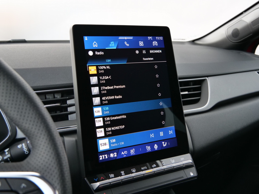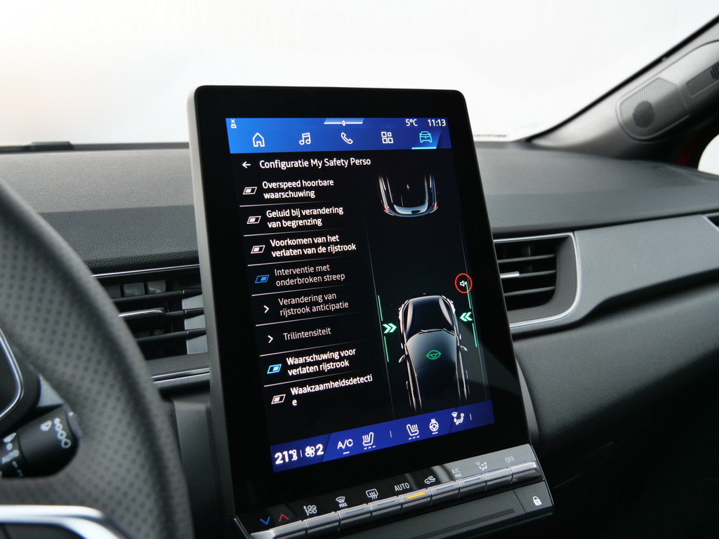 De hoogwaardige achteruitrijcamera en het display met hoge resolutie zorgen dat helemaal niets u meer ontgaat van wat er achter de auto gebeurt. Adaptive cruise control houdt de ingestelde snelheid vast en houdt automatisch afstand tot uw voorligger. Voor een veilige rit is het belangrijk dat uw handen het stuur vasthouden en uw ogen gefocust blijven op de weg; daarom kunt u het audio-installatiesysteem, met DAB-ontvangst en navigatiesysteem bedienen met het stuurwiel of via spraakbediening. De auto is ook uitgevoerd met automatische airconditioning. Om de veiligheid onderweg te verhogen, heeft deze Renault zowel een automatisch inschakelbare verlichting als een regensensor aan boord, zodat hij zelf de verlichting en de ruitenwissers kan inschakelen. Deze auto is voorzien van keyless entry, automatisch dimmende binnenspiegel en lederen stuur.