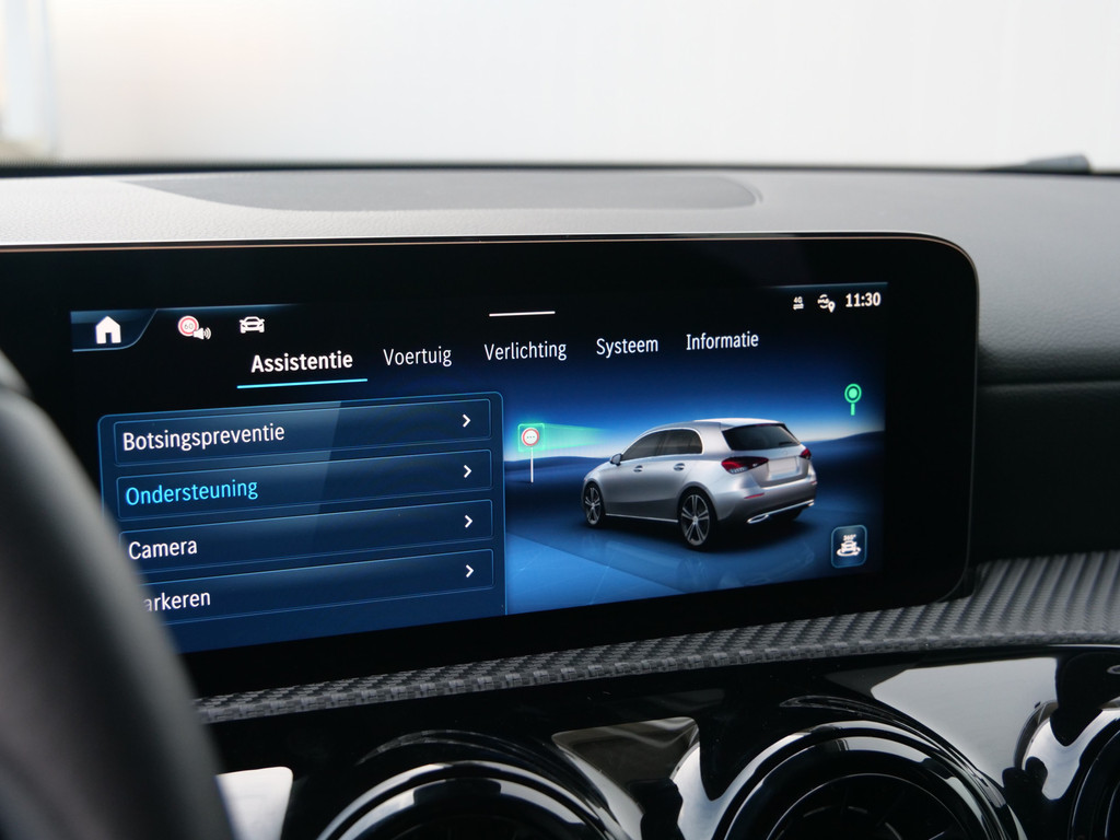 Zoals u mag verwachten van deze Mercedes-Benz A-klasse is hij uitgerust met een reeks aan actieve veiligheidssystemen. Keep your lane? Het Lane-keeping systeem zorgt er automatisch voor. Het risico van een kop-staartbotsing wordt aanzienlijk verminderd door de forward collision warning. De veiligheidssystemen in deze auto nemen het zelfs waar als de bestuurder tekenen van vermoeidheid vertoont, en waarschuwen dan met een duidelijk signaal. In deze Mercedes-Benz vinden we verder een autonoom remsysteem en bandenspanningcontrolesysteem.