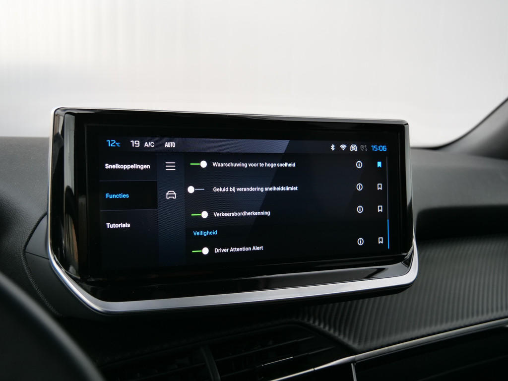 Met het digitale dashboard kunt u de cockpit-interface naar uw voorkeur instellen. Locatie, motorconditie, storingen... via Connected Services krijgt u alle vitale info over de auto door. Ook handig bij pech! Gemakkelijk en veilig is de spraakbediening voor het audiosysteem. Daarbij kunt u het ook bedienen met de knoppen op het stuur. Met de automatische airconditioning selecteert u de gewenste temperatuur. Het systeem doet de rest. Parkeersensoren ondersteunen u tijdens het in- en uitparkeren. De uitrusting van deze Peugeot is met WIFI-hotspot, regensensor, cruise control, automatisch dimmende binnenspiegel, lederen stuur en centrale deurvergrendeling met afstandsbediening behoorlijk compleet.