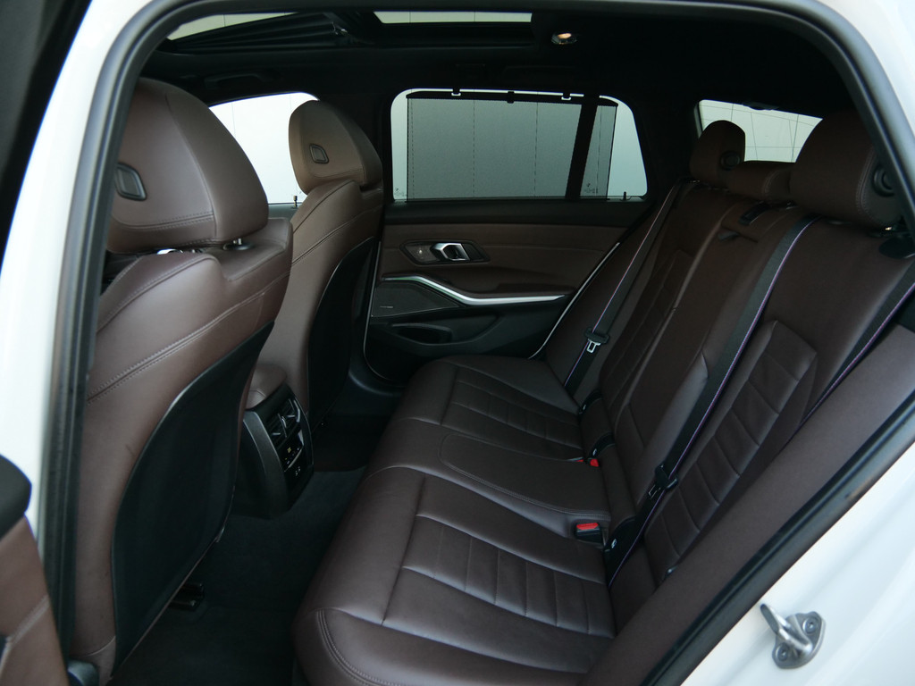 Stijlvolle vormgeving, een comfortabel en ruim interieur, een onderstel dat alle wegen en omstandigheden aankan en een motor die topprestaties levert bij een bescheiden brandstofverbruik: deze BMW 3-serie Touring heeft het allemaal. In deze auto vindt u een benzinemotor en een automatische transmissie. Misschien valt u voor het lederen interieur. Maar wat een licht van binnen ook, dankzij het elektrisch bediende glazen panorama dak; en niet te vergeten het grote gemak van een elektrisch bedienbare achterklep. U past de stoelen moeiteloos aan, ze zijn elektrisch in te stellen en hebben bovendien een geheugen. Ook 18 inch lichtmetalen velgen, LED koplampen, BMW M-sportpakket, geluidsisolerende ramen, sportinterieur en in delen neerklapbare achterbank horen tot de voorzieningen op deze auto.
