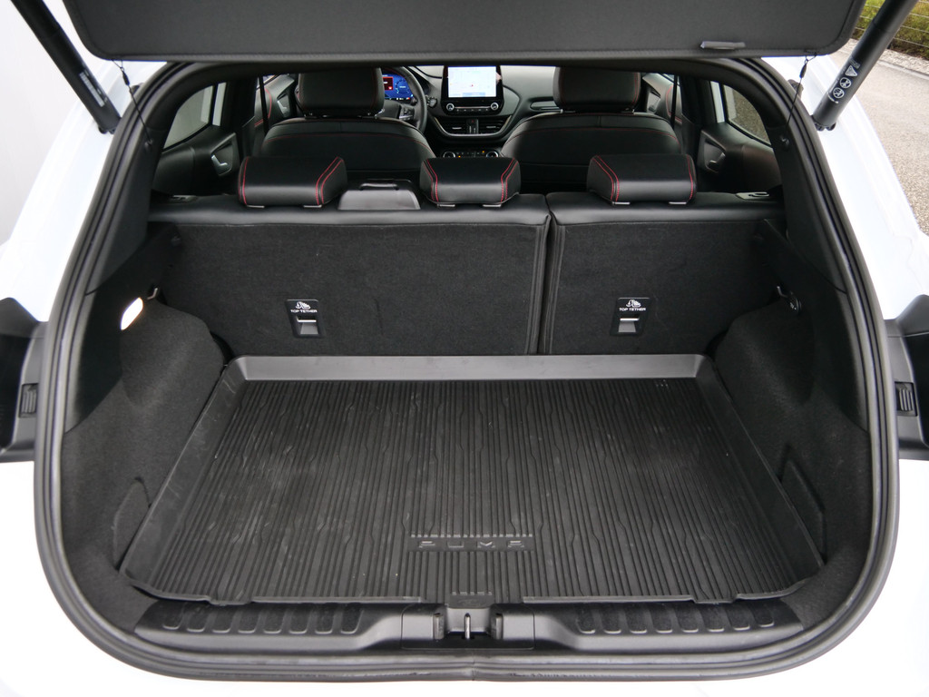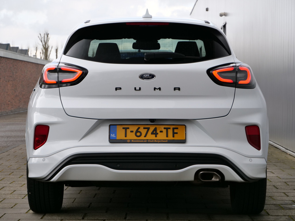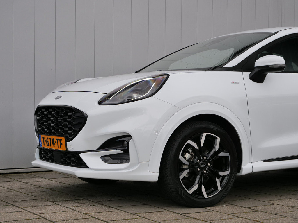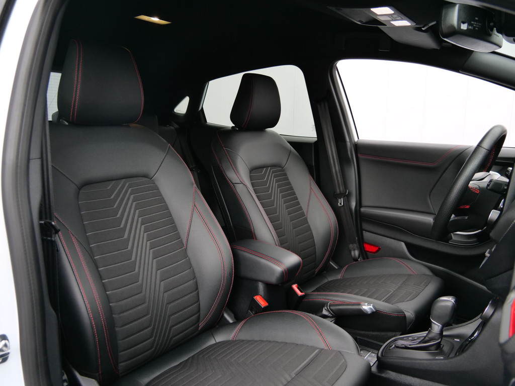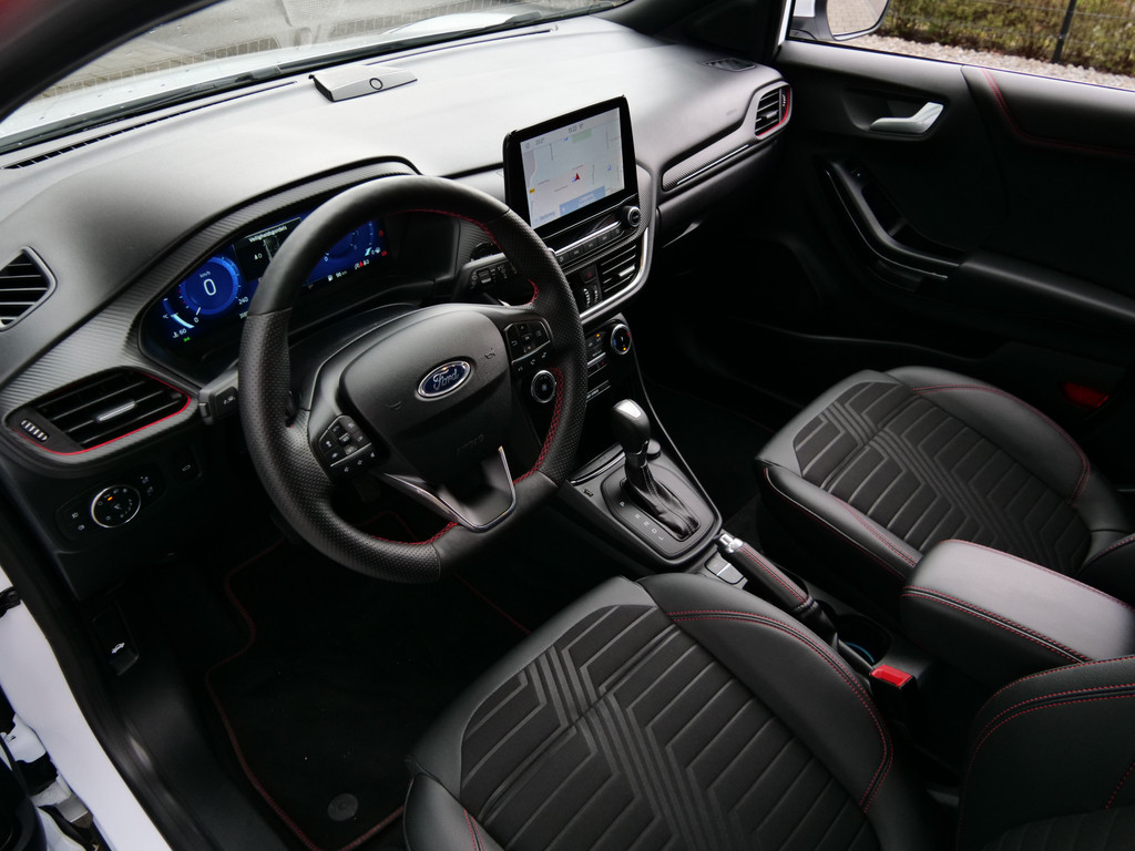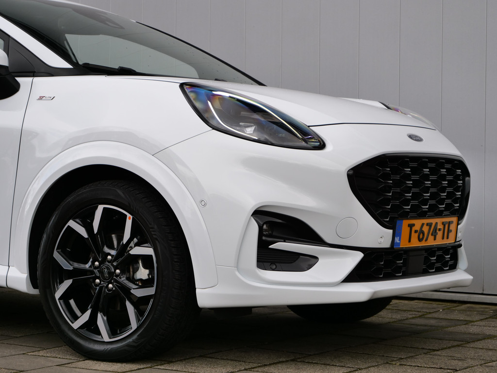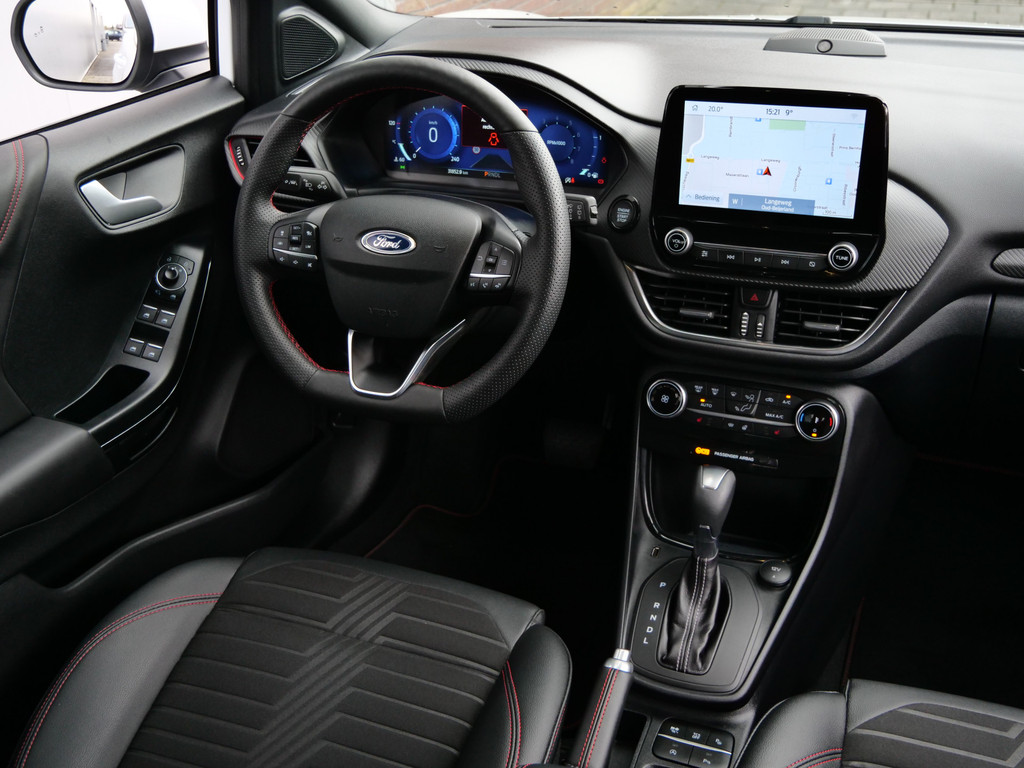 U ziet het meteen aan zijn krachtige design, de Ford Puma is een auto die kwaliteit uitstraalt. Onderhuids vindt u die kwaliteit terug in de geavanceerde techniek, die deze auto zijn sportieve rijeigenschappen geeft. Met zijn benzinemotor en automatische transmissie is dit een prima auto voor nog vele kilometers. Lekker hoor, die verwarmbare voorstoelen. Helemaal op koude dagen. Ziet er goed uit, die sportstoelen. Maar waar het om gaat, is de solide zit onder alle omstandigheden. Met een druk op de knop gaat de elektrische achterklep open. Ook is de auto voorzien van: 18 inch lichtmetalen velgen, LED koplampen, sportonderstel, halflederen bekleding, geluidsisolerende ramen en in delen neerklapbare achterbank.