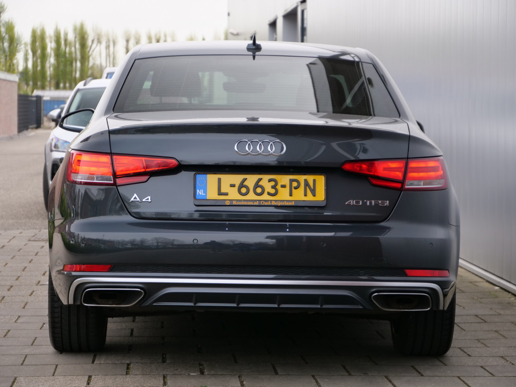 Duitse automerken staan bekend om hun innovatiekracht, topkwaliteit en uitstekende prestaties. Zo ook bij deze Audi A4 Limousine. Een en al Duitse klasse. Ook qua looks springt deze auto eruit, vanwege de fraaie S-Line styling. De uitstekende prestaties van deze auto komen van de viercilinder benzinemotor en de automatische transmissie. Tijdens gure dagen is het prettig zitten in de verwarmbare voorstoelen. Mooi om te zien en heerlijk om in te zitten zijn de sportstoelen, die u onderweg optimale ondersteuning geven. De bagageruimte is toegankelijk via een comfortverhogende elektrische achterklep. Tot de voorzieningen van deze auto behoren 18 inch lichtmetalen velgen, LED koplampen, sportonderstel, warmtewerend glas, in delen neerklapbare achterbank en LED-achterlichten.