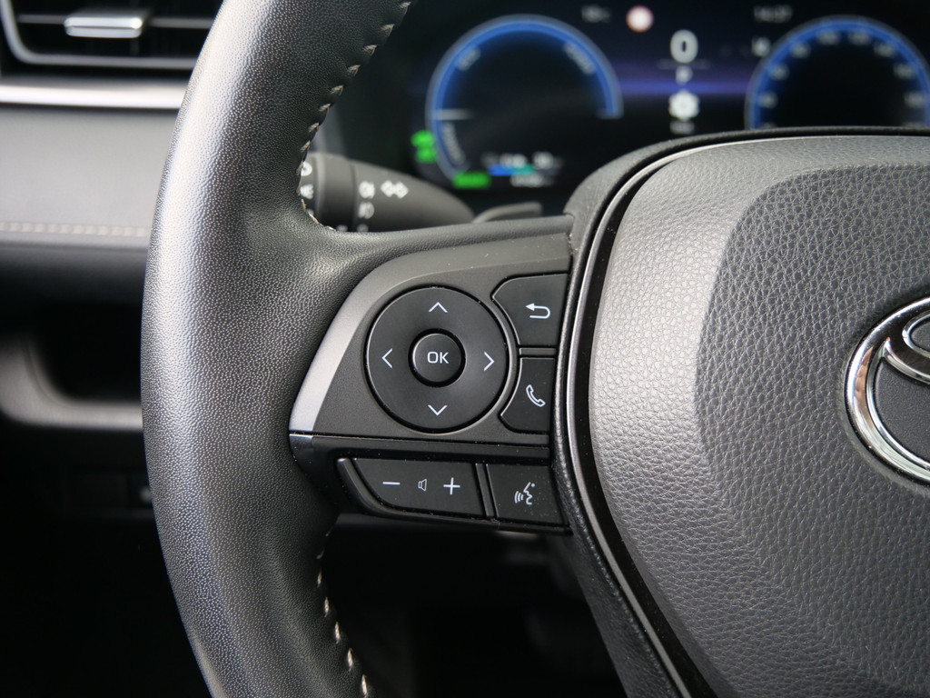 De indeling van het digitale dashboard is zo ingericht dat u met één blik precies weet wat u weten wilt. Of u nu achteruit rijdt, parkeert of een smalle straat inslaat, de 360 graden camera op deze auto, mogelijk gemaakt door vier camera's, biedt een perfect beeld van uw omgeving. Met adaptive cruise control houdt deze auto automatisch afstand tot uw voorligger. Het infotainmentsysteem bedient u met uw vingers of met uw stem, met dank aan de geïntegreerde stembediening. De ingebouwde Connected Services vertellen u via de app alles over de status van de auto. Locatie, onderhoudsstatus, brandstofpeil en nog veel meer! De uitrusting van deze Toyota is met premium audiosysteem, full map navigatiesysteem, electronic climate control, schakelpaddles aan het stuur, draadloos opladen en DAB ontvangst behoorlijk compleet.