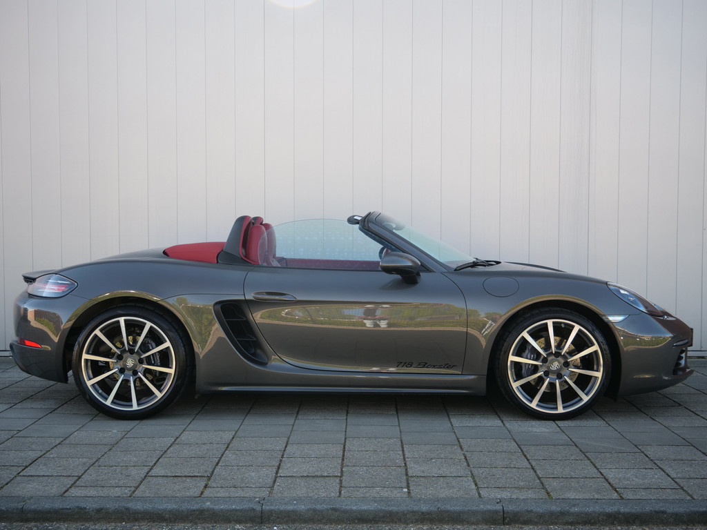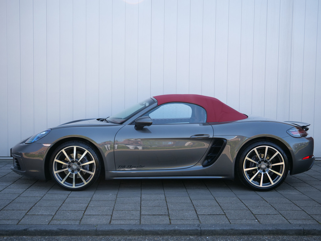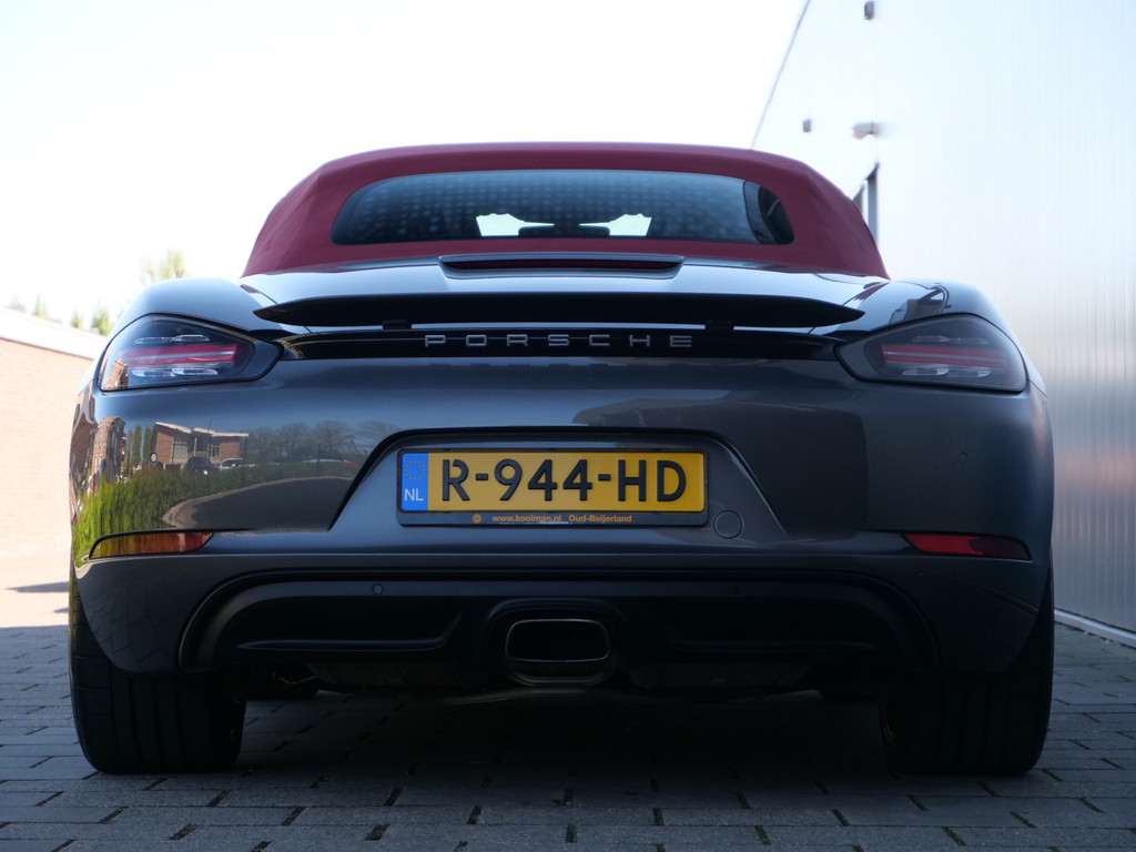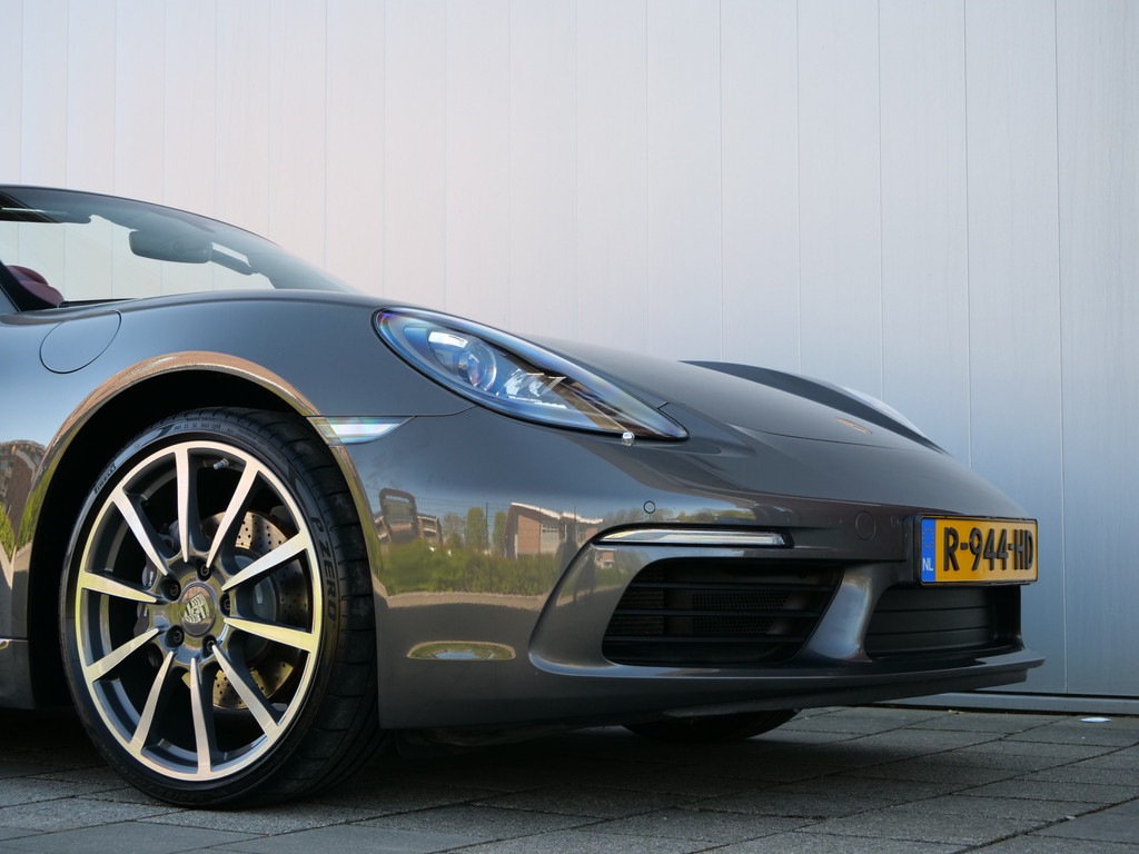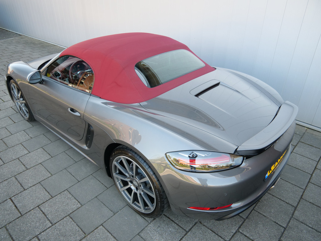 Zodra de zon zich laat zien, kunt u heerlijk genieten achter het stuur van deze cabriolet. De Porsche 718 Boxster vertegenwoordigt het beste van degelijk Duits design. Een viercilinder benzinemotor en een automatische transmissie zorgen voor de uitstekende prestaties van deze auto. De stijlvolle, luxe uitstraling is inbegrepen in de vorm van leren bekleding. Tijdens gure dagen is het prettig zitten in de verwarmbare voorstoelen. Altijd een goede zitpositie bij iedere snelheid, dankzij de sportstoelen. Het elektrisch bediende cabriodak opent en sluit automatisch. Met de krachtige xenonverlichting heeft u optimaal zicht in het donker. Bij de rijke uitrusting horen ook 20 inch lichtmetalen velgen, warmtewerend glas, LED-achterlichten, variabele stuurbekrachtiging en windscherm.