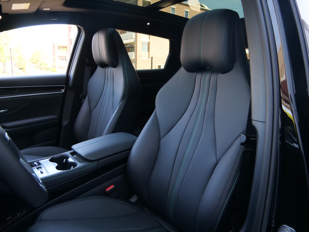 Geavanceerde technische systemen houden tijdens elke rit het verkeer in de gaten en reageren op potentieel gevaarlijke situaties. Jachtvliegers doen het al jaren, maar u kunt het nu ook: met de head-up display functie-informatie aflezen zonder uw ogen van de weg te halen. Tijdens de rit hebt u altijd een bijrijder, want de verkeersbord-detectie leest de borden langs de weg en projecteert ze voor u op het instrumentarium. Met het Lane-keeping systeem gaat u nooit onbedoeld over de streep. In deze BYD vinden we verder een dodehoekdetectie, forward collision warning system, hill hold functie, brake assist, vermoeidheidsherkenning en bandenspanningcontrolesysteem.