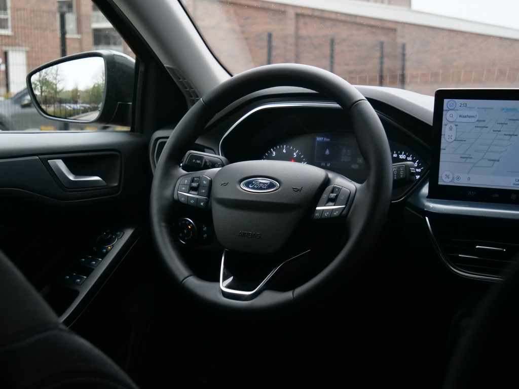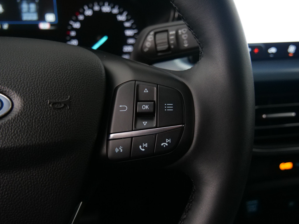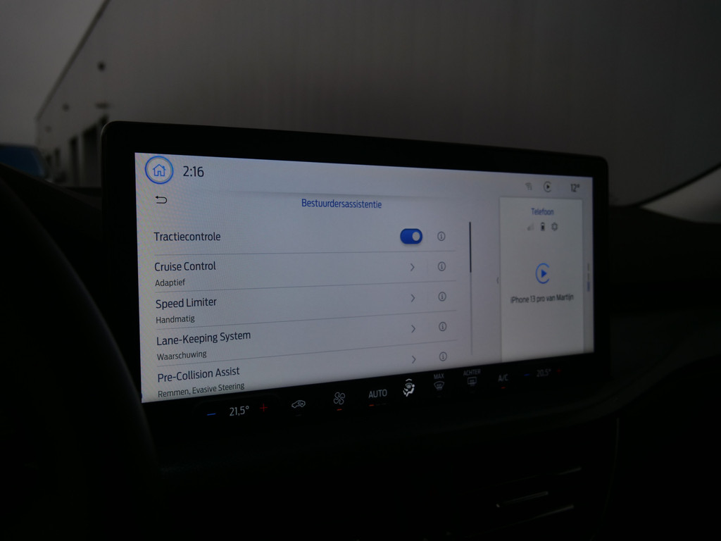 De geavanceerde technologie in deze Ford is in staat om onderweg het verkeer om u heen te monitoren en er op te reageren. Zo hebt u als het ware een automatische co-piloot aan boord. Verkeersbord-detectie herkent verkeersborden en toont deze op het instrumentarium van de auto. Het Lane-keeping systeem registreert permanent of u binnen de lijnen van de rijstrook blijft; dwaalt u onbedoeld af, dan waarschuwt het systeem en corrigeert de koers. Botsingen met een voorligger gebeuren relatief vaak. De forward collision warning slaat tijdig alarm als dat risico ontstaat, zodat u kunt ingrijpen. Met voorzieningen als dodehoekdetectie, hill hold functie, brake assist en bandenspanningcontrolesysteem, bent u altijd veilig onderweg.