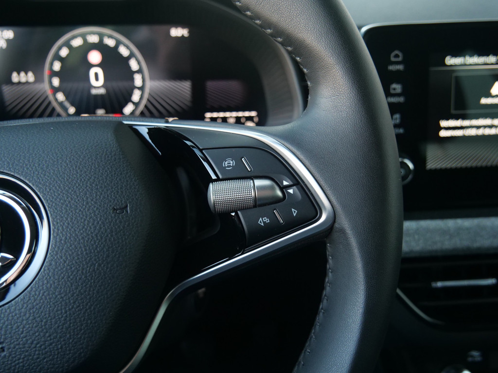 Automatische airconditioning regelt volautomatisch de temperatuur. U kiest de gewenste temperatuur en het systeem doet de rest. U kunt bij het inparkeren natuurlijk niet aan alle kanten ogen hebben. Daarom is deze ŠKODA Kamiq voorzien van parkeersensoren! Maximumsnelheid? Even de cruise control instellen en u blijft perfect binnen de marges. Autosleutels overbodig. Deze ŠKODA Kamiq is voorzien van keyless start. Ook DAB ontvangst, automatisch dimmende binnenspiegel, lederen stuur, centrale deurvergrendeling met afstandsbediening, boordcomputer en lederen versnellingspook zijn aan boord.