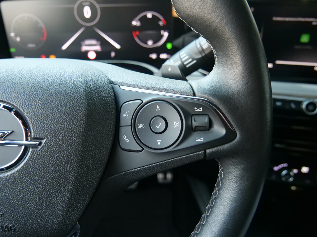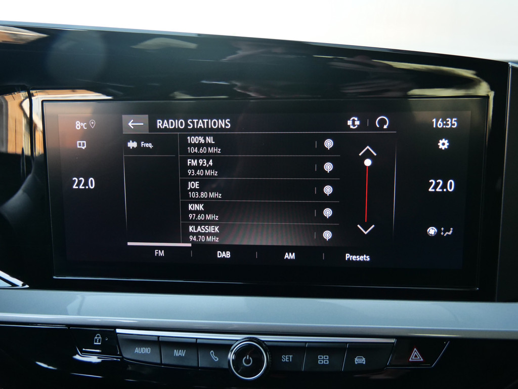 Ook achter de auto geen verrassingen bij het inparkeren. Daarvoor zorgt de achteruitrijcamera. Als u de adaptive cruise control inschakelt, regelt de auto zelf de snelheid en de afstand tot de auto voor u. Laat u onderweg niet afleiden, de bediening van het audiosysteem gaat met knoppen op het stuur. Natuurlijk is de audio-installatie voorzien van dab-ontvangst. Tot de standaard uitrusting van deze auto hoort ook electronic climate control. Achter het stuur van deze Opel bent u niet alleen. De auto kijkt als het ware met u mee tijdens de rit. De regensensor schakelt de ruitenwissers in als het nodig is en de automatisch inschakelbare verlichting doet de lichten voor u aan. Deze auto is voorzien van keyless entry, automatisch dimmende binnenspiegel, centrale deurvergrendeling met afstandsbediening en boordcomputer.