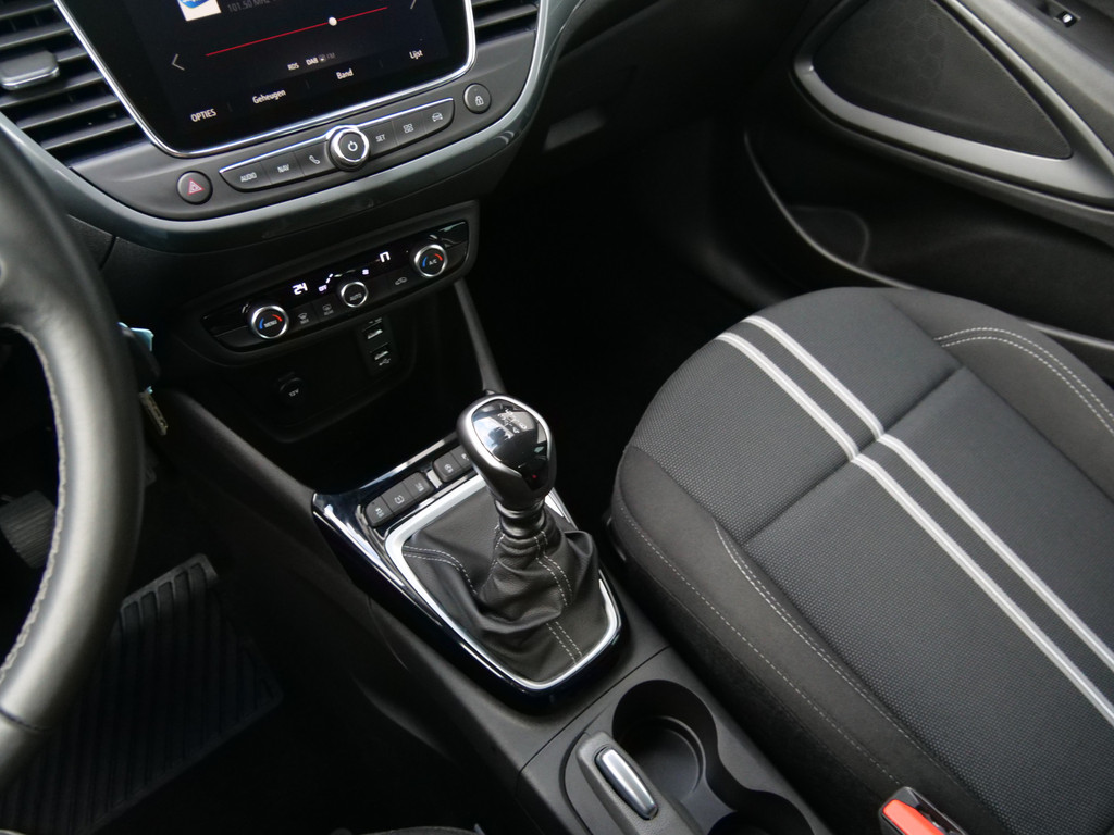 De achteruitrijcamera brengt precies in zicht wat zich achter u bevindt en toont een glashelder beeld op hoge resolutie. Een geluidssignaal waarschuwt hoeveel ruimte u nog heeft. Prettig, altijd weten waar je moet zijn en hoe lang de rit nog duurt met het navigatiesysteem. Het comfort wordt verhoogd door de aanwezige electronic climate control. Het geluidssyteem in deze Opel Crossland is regelbaar met behulp van de audiobediening op het stuur. Met de DAB-ontvanger heeft u keuze uit talloze digitale radiozenders met de allerhoogste geluidskwaliteit. En deze auto heeft ook regensensor, cruise control, automatisch dimmende binnenspiegel, lederen stuur en boordcomputer als standaard uitrusting.